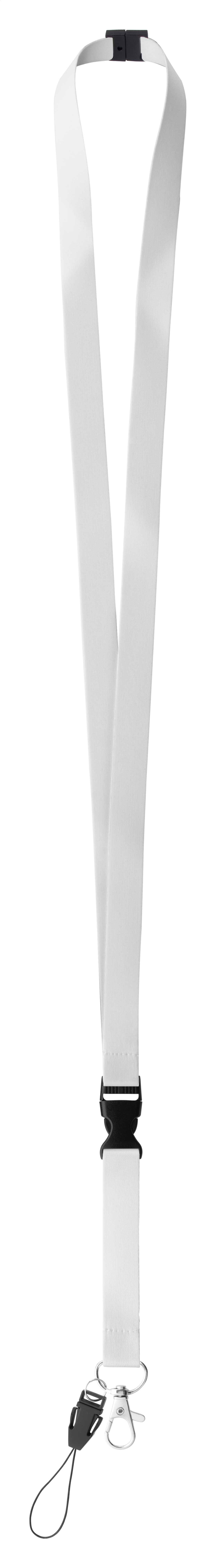 Polyesterový lanyard 15mm na zakázku s oddělitelnou kovovou karabinkou, přívěškem na mobil a bezpečnostní přezkou. Cena zahrnuje sublimační potisk na obou stranách, nezahrnuje tiskovou přípravu. Min. mn.: 100 ks.