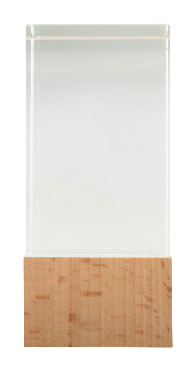 Skleněná trofej s podnoží z bukového dřeva. V kraftové dárkové krabičce.