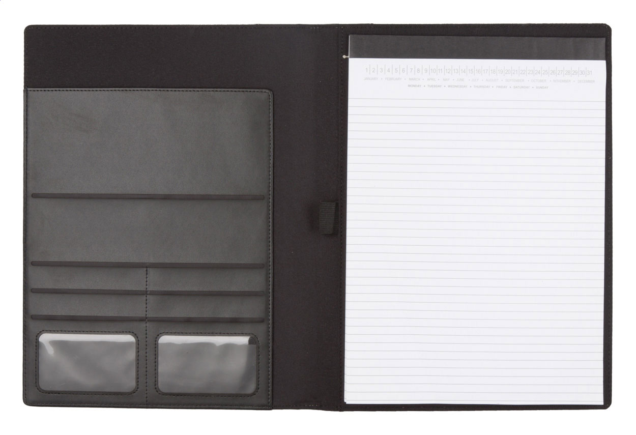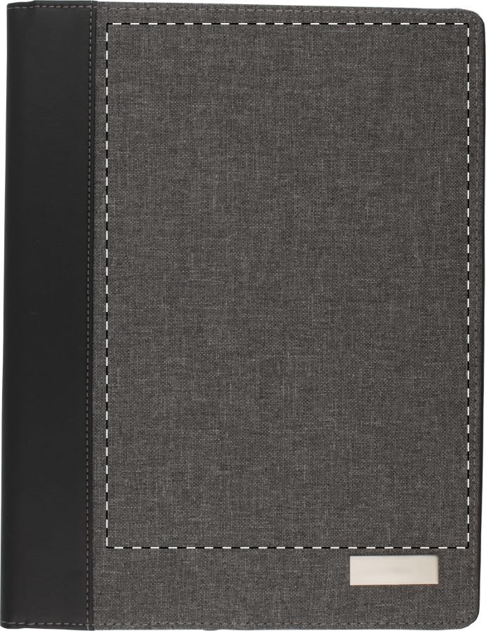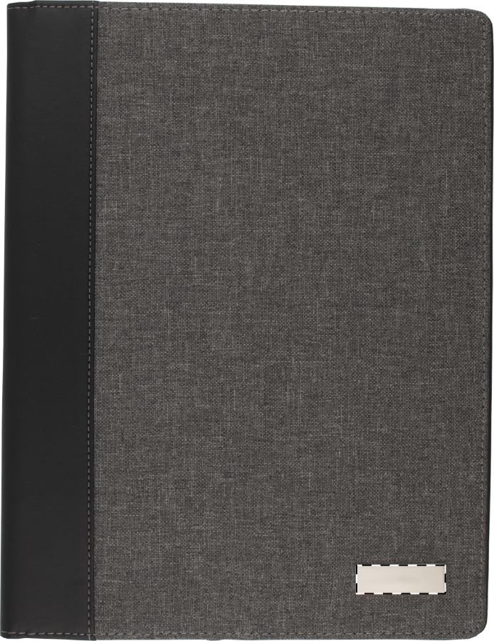 A4 sloha na dokumenty s deskami z PU kůže a plátna s kovovým štítkem a s 20 listým linkovaným blokem.