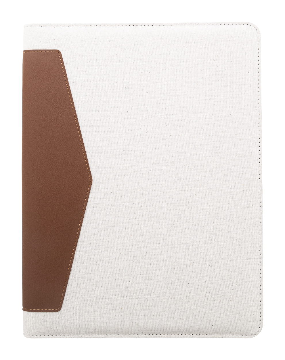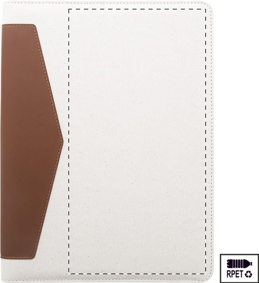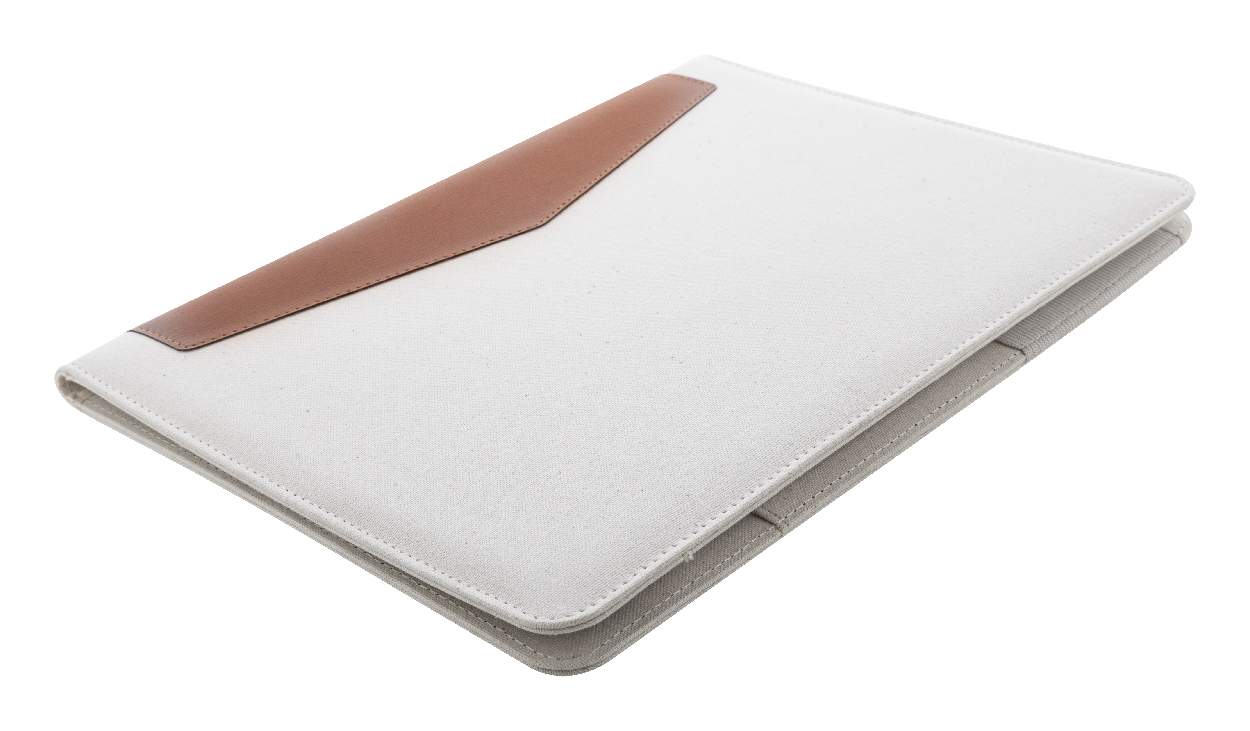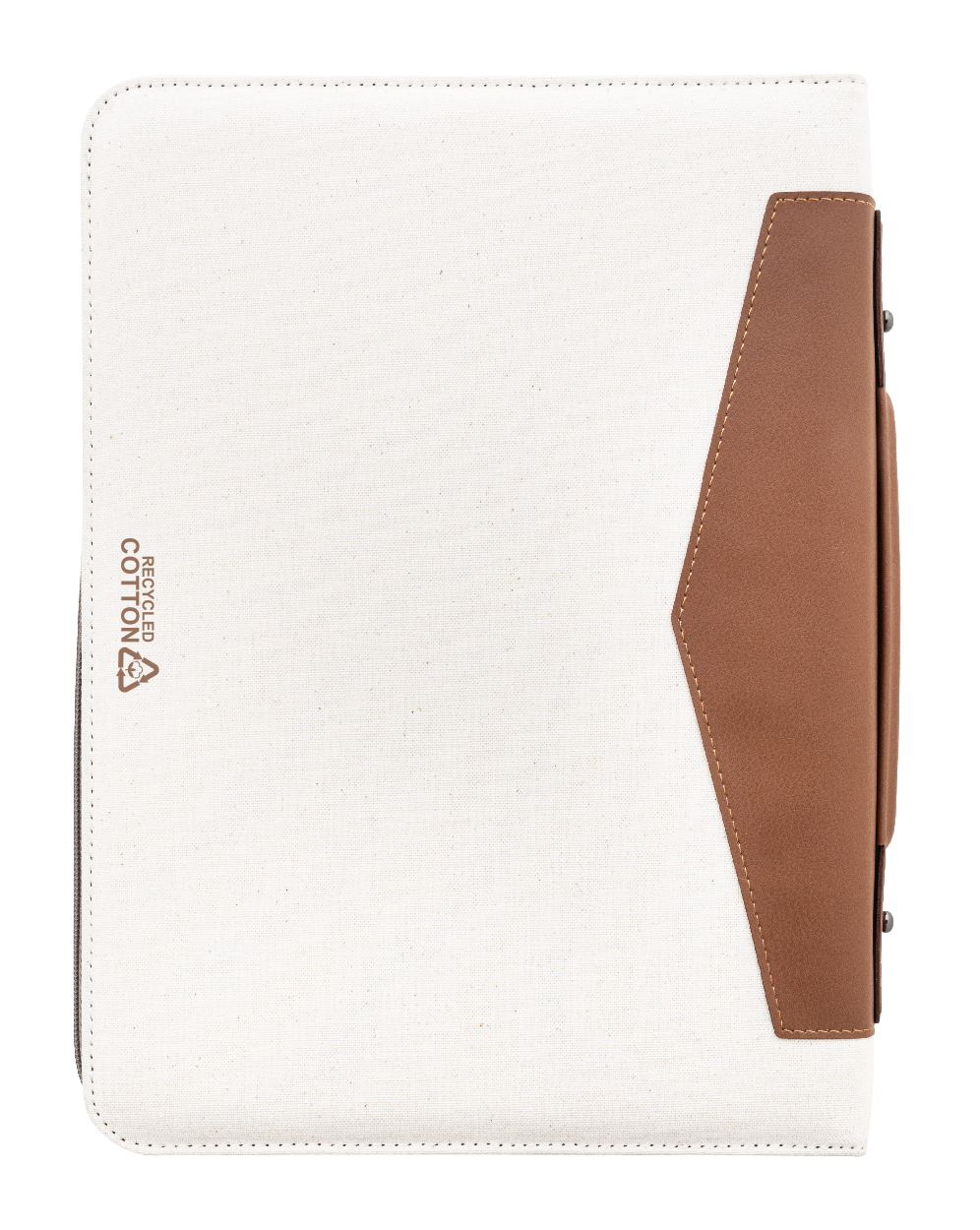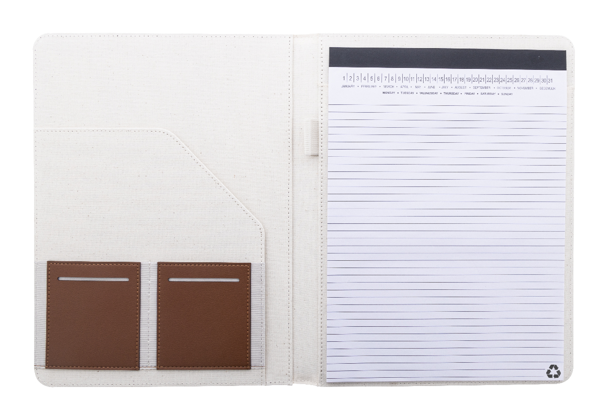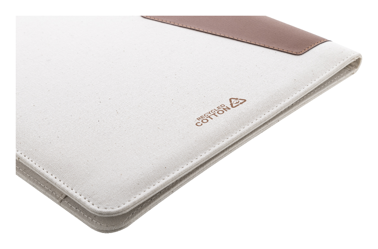 Sloha A4 na dokumenty z recyklovaného plátna a recyklované PU kůže s několika vnitřními kapsami na organizér. S 20 linkovanými listy poznámkového bloku z recyklovaného papíru. 70% recyklovaná bavlna a 30% RPET polyester.