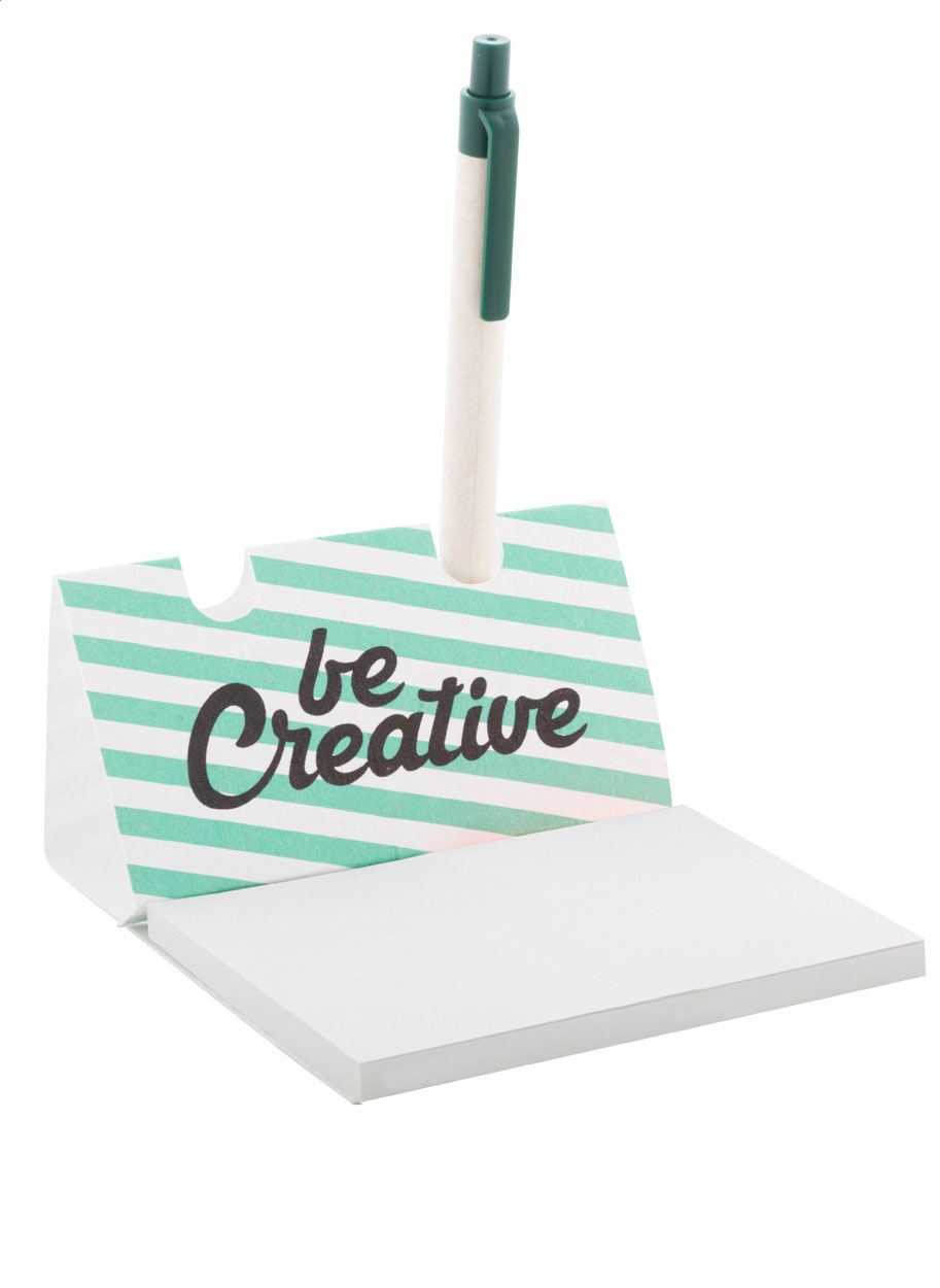 Na zakázku vyrobený držák na pero ze semenného papíru s různými semeny divokých květin s lepicími papírky. Obsahuje 50 listů samolepicích papírů z recyklovaného papíru (100×75 mm). Cena zahrnuje plnobarevný potisk na vrchní straně, nezahrnuje tiskovou přípravu. Min. mn.: 100 ks.