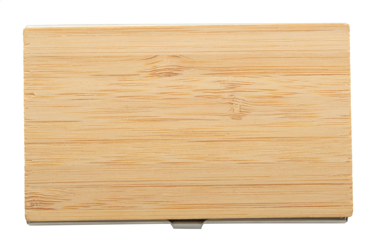 Kovový vizitkář potažený bambusem.