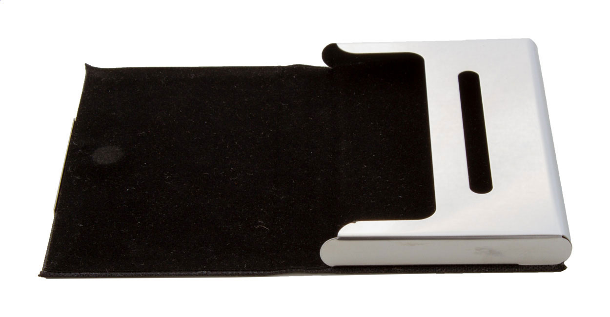 Kovový vizitkář potažený RPET polyesterem s potisknutelnou kovovou částí.