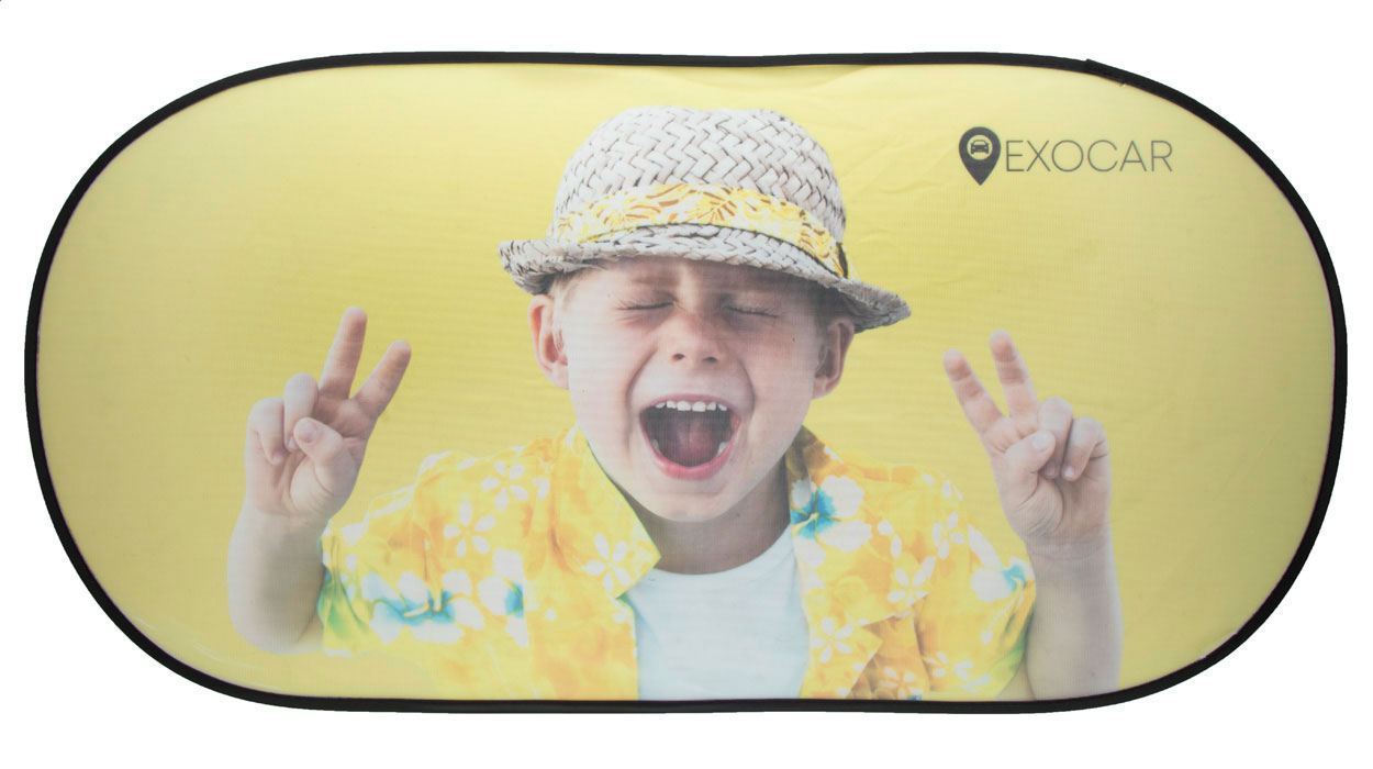 Skládací clona na přední okno pro sublimační tisk. Dodáváno s přísavkami.