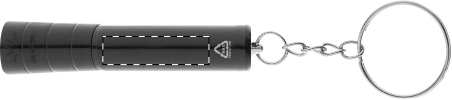 Mini baterka s 1 LED, z recyklovaného ABS plastu s kovovým povrchem a kovovým kroužkem na klíče. S knoflíkovou baterií.