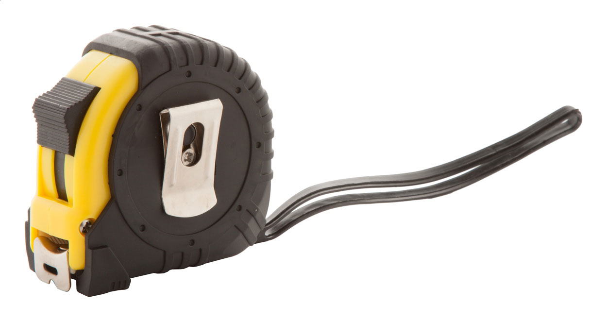 Plastový metr s aretací, kovovým klipem a šňůrkou na ruku, 5m.