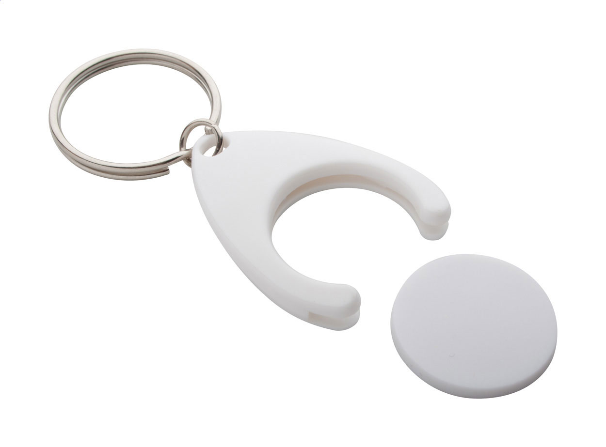 Plastový přívěšek na klíče s plastovým žetonem do nákupních vozíků.