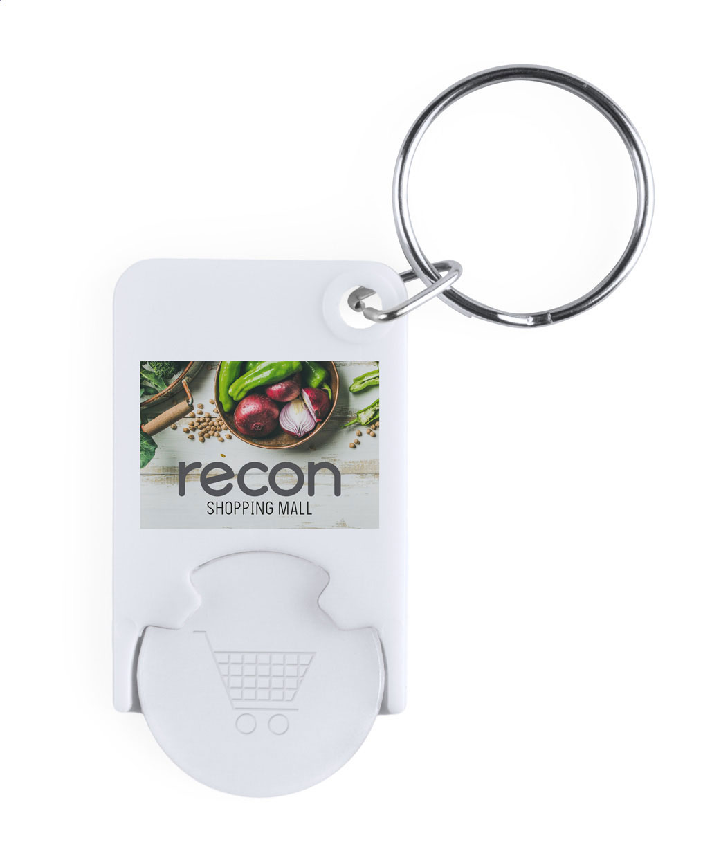 Plastový přívěšek na klíče se žetonem do nákupních vozíků.
