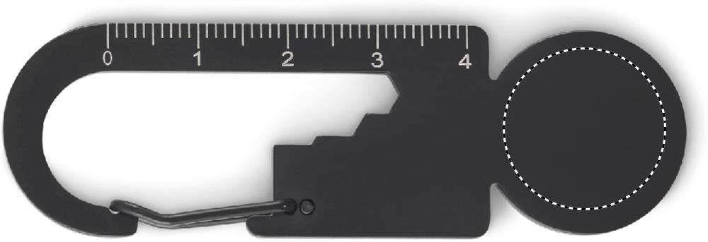 Multifunkční přívěšek na klíče z recyklované nerezové oceli (90 % recyklovaná nerezová ocel a 10 % nerezová ocel). Žeton do vozíku, otvírák na láhve, pravítko a šestihranný klíč 5,5 mm, 7 mm a 8 mm.