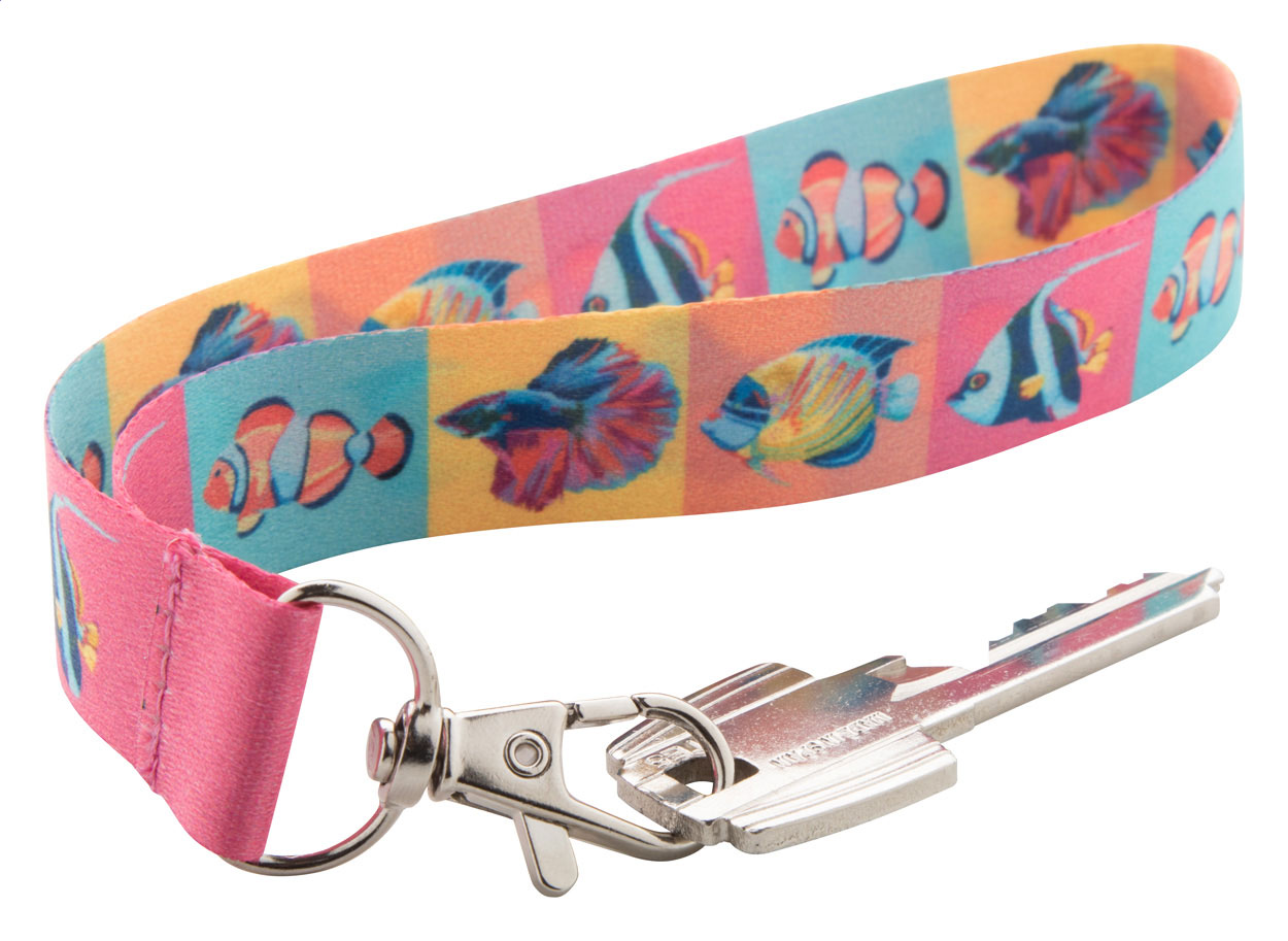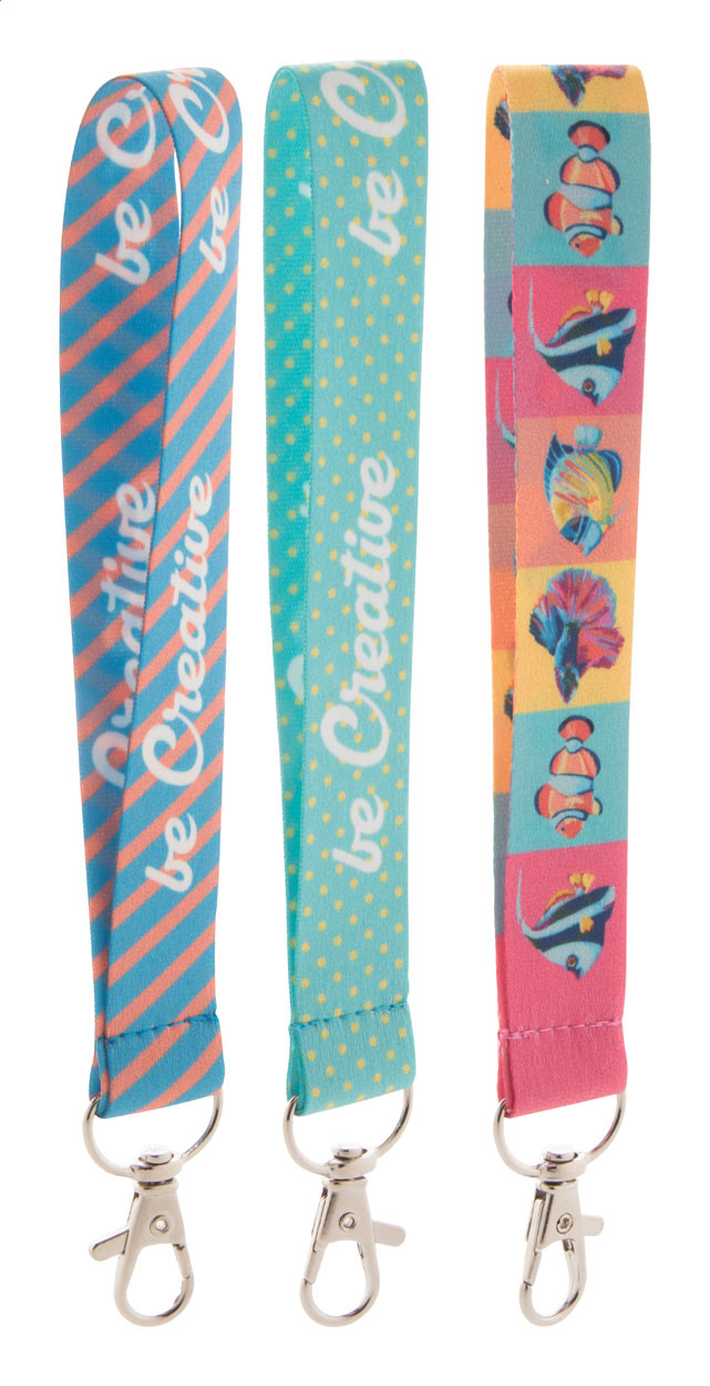 Polyesterový přívěšek na klíče na zakázku s kovovou karabinkou. Cena zahrnuje sublimační potisk na obou stranách, nezahrnuje tiskovou přípravu. Min. mn.: 100 ks.