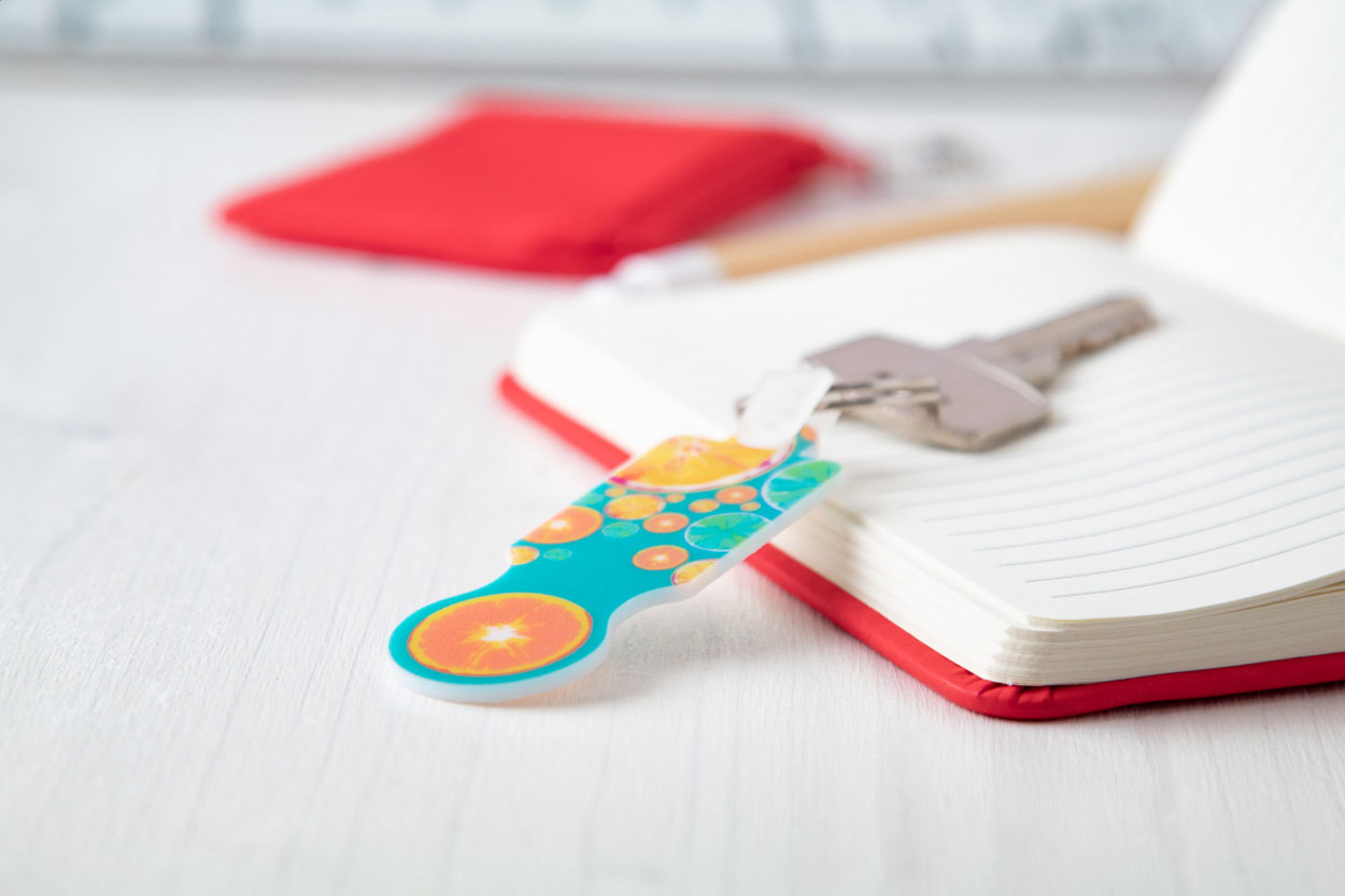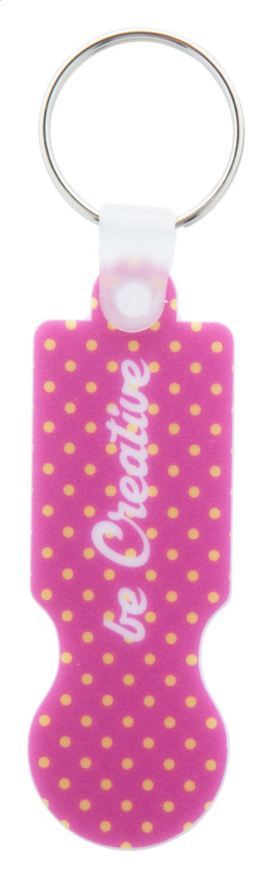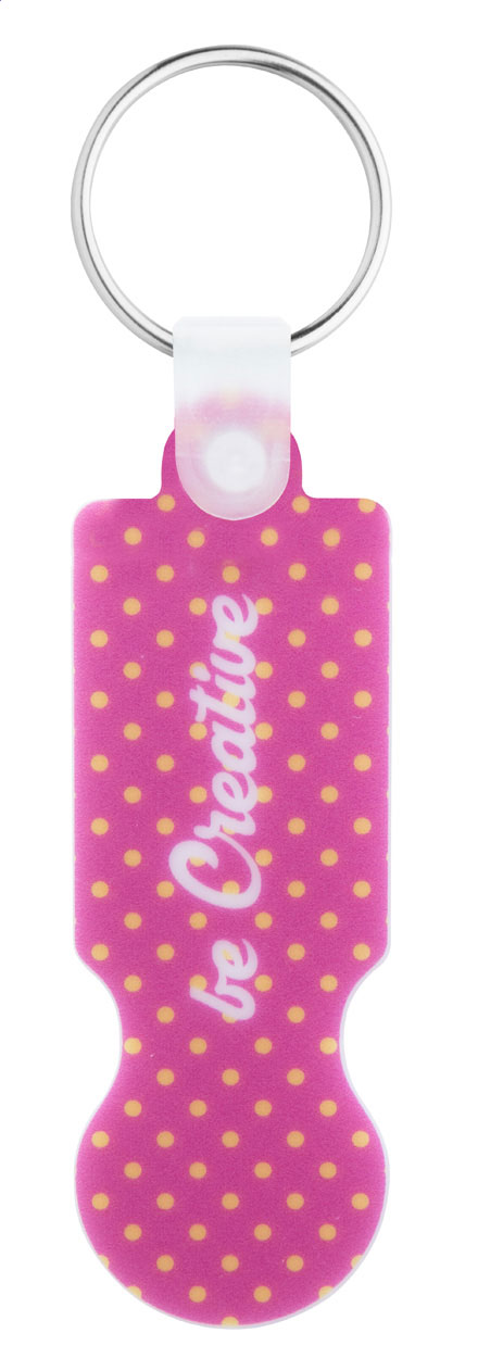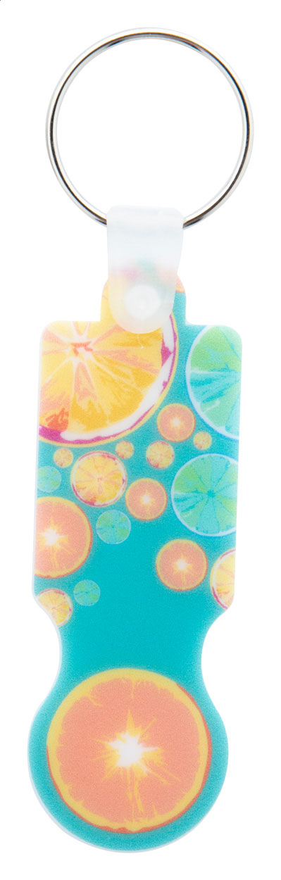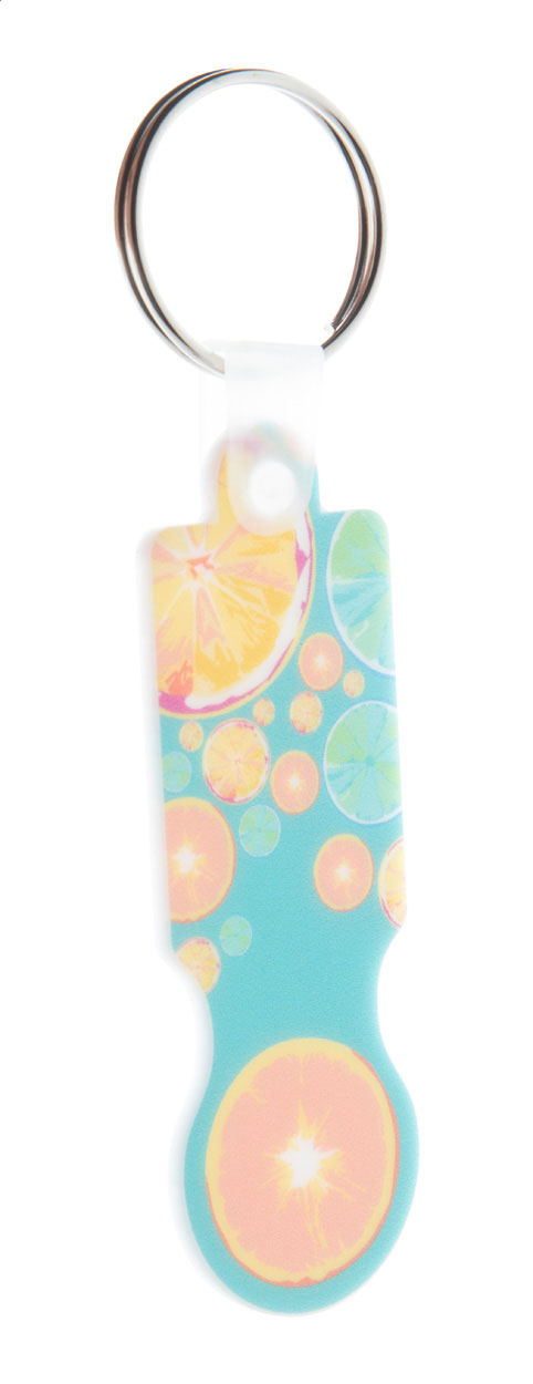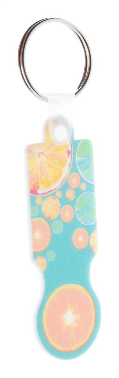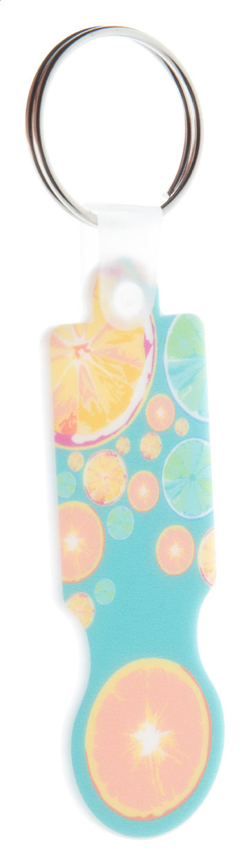 Plastový přívěšek na klíče s koncovkou do nákupních vozíků s plnobarevným potiskem. Cena zahrnuje UV LED tisk na jedné straně, nezahrnuje tiskovou přípravu. Min. mn.: 200 ks.