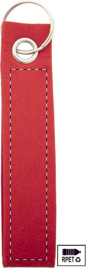 Přívěšek na klíče z RPET plsti s kovovým kroužkem. S výrazným logem RPET.