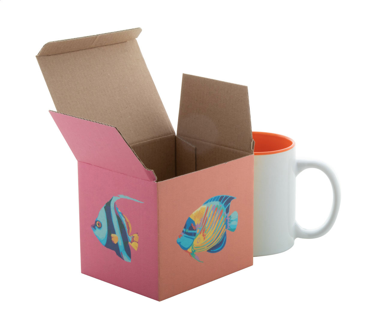 Krabička z vlnité lepenky na zakázku s plnobarevným potiskem, pro hrnky o objemu 300 - 350 ml. Cena zahrnuje digitální tisk, nezahrnuje tiskovou přípravu. Min. mn.: 50 ks.