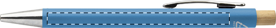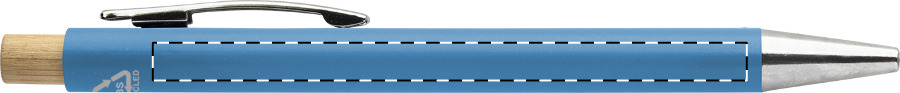 Kuličkové pero z recyklovaného ABS plastu s bambusovým tlačítkem a kovovým klipem. S modrou náplní.