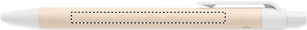 Tlačítkové kuličkové pero s tělem ze směsi recyklovaných kartonů od mléka (70%) a recyklovaného papíru (30%) a doplňky z PLA (100% biologicky rozložitelná kukuřice). Modrý inkoust.