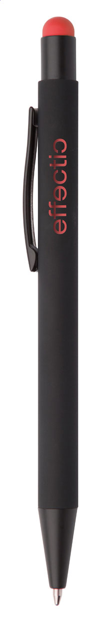 Hliníkové kuličkové a dotykové pero s pogumovanou úpravou a speciálním povrchem pro zrcadlový laser v barvě stylusu, s modrou náplní.