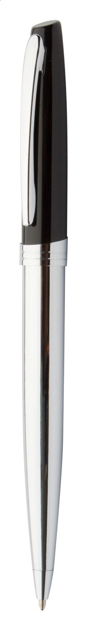 Kuličkové pero s pevným, lesklým pochromovaným tělem, s modrou náplní. Dodáváno v dárkové krabičce.