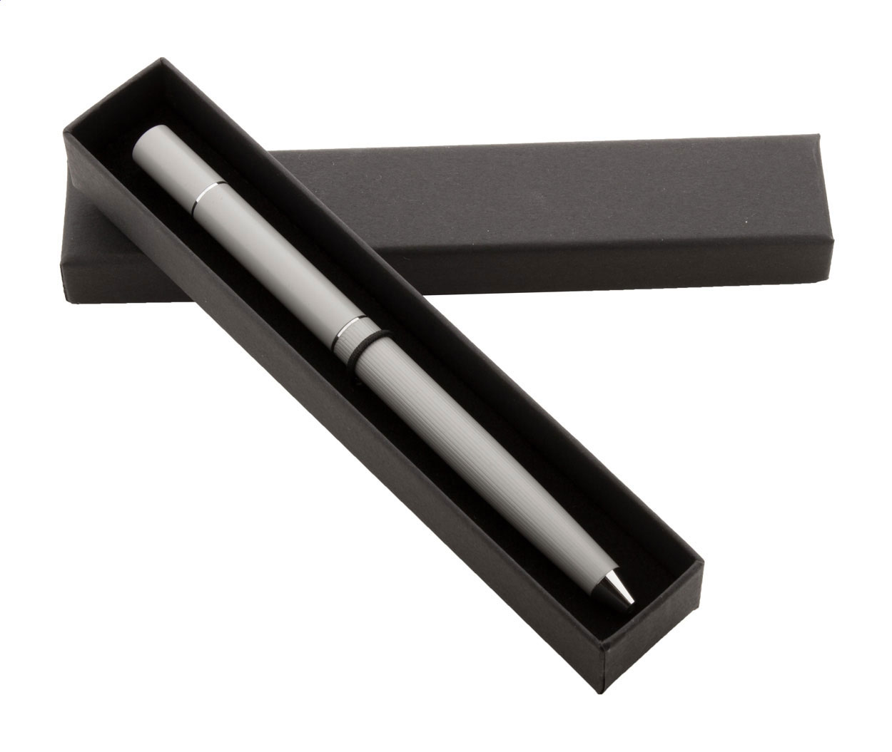 Kovové kuličkové pero 2v1 a pero bez inkoustu v černé dárkové krabičce. S modrou náplní a špičkou z kovové slitiny, která oxiduje papír.