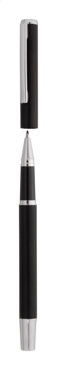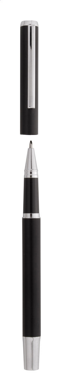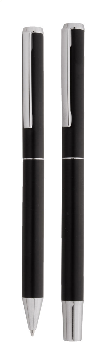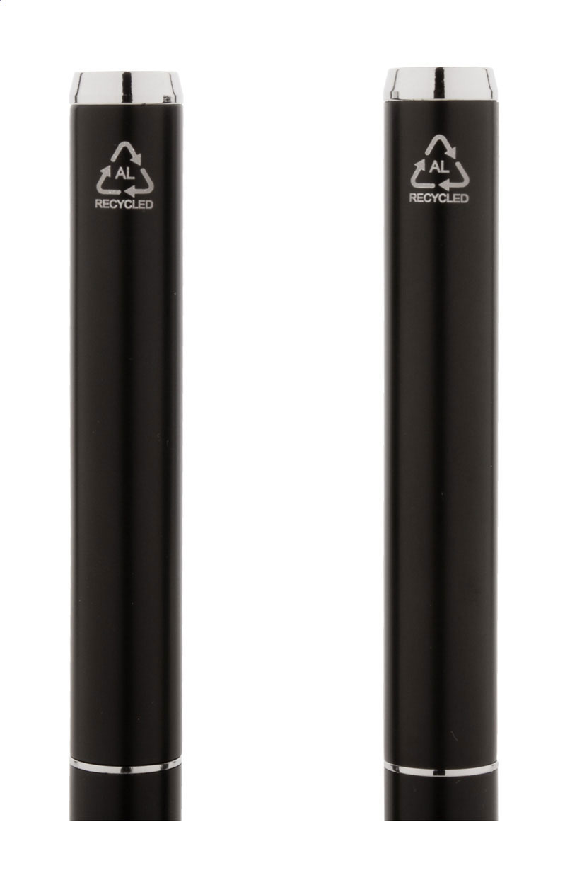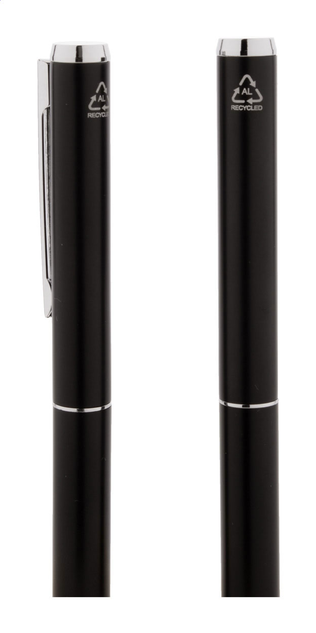 Sada pera z recyklovaného hliníku s rollerem a kuličkovým perem v černé papírové dárkové krabičce. S modrou náplní.