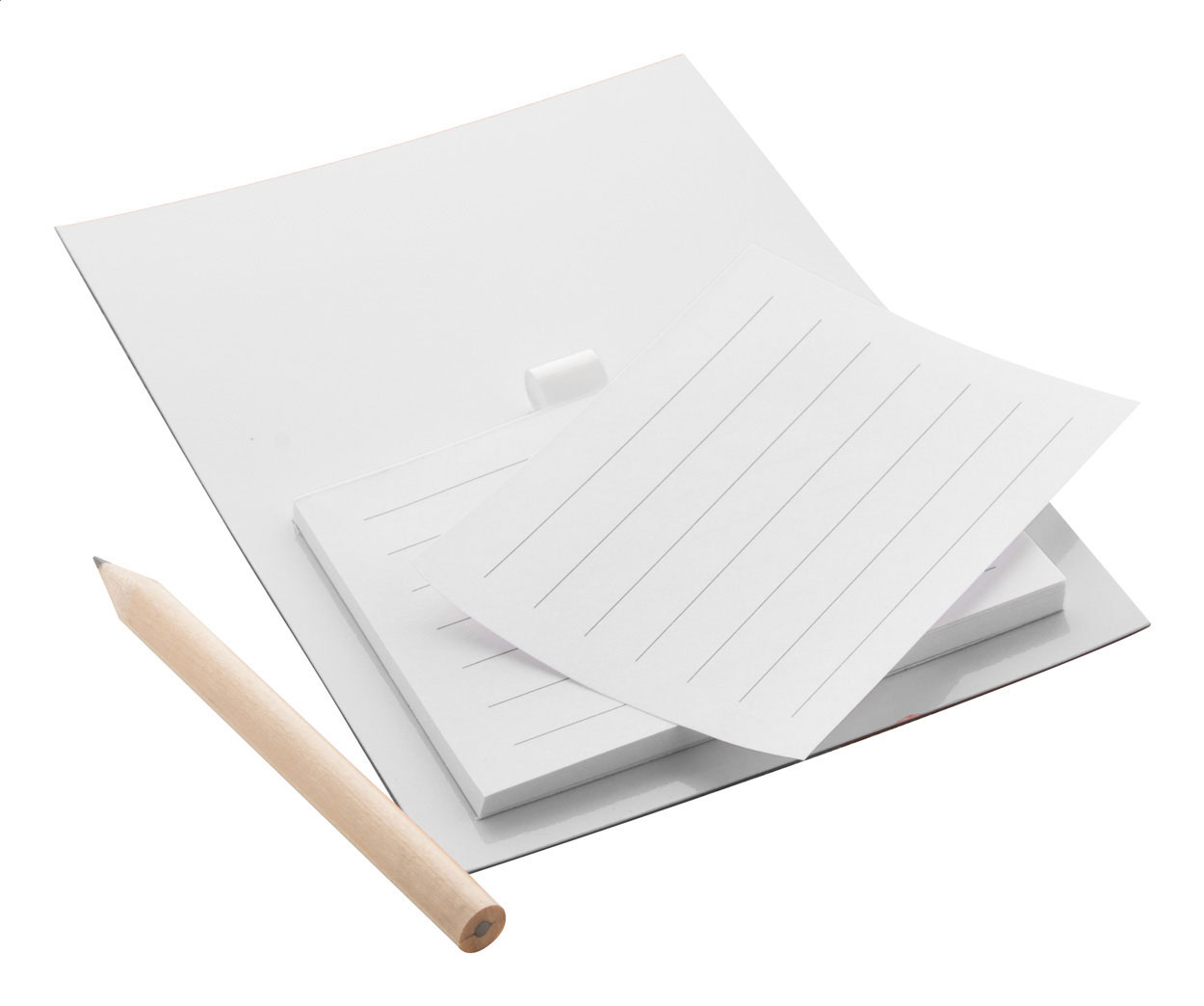 Barevná magnetka na ledničku se 40ti listým blokem a mini dřevěnou tužkou.