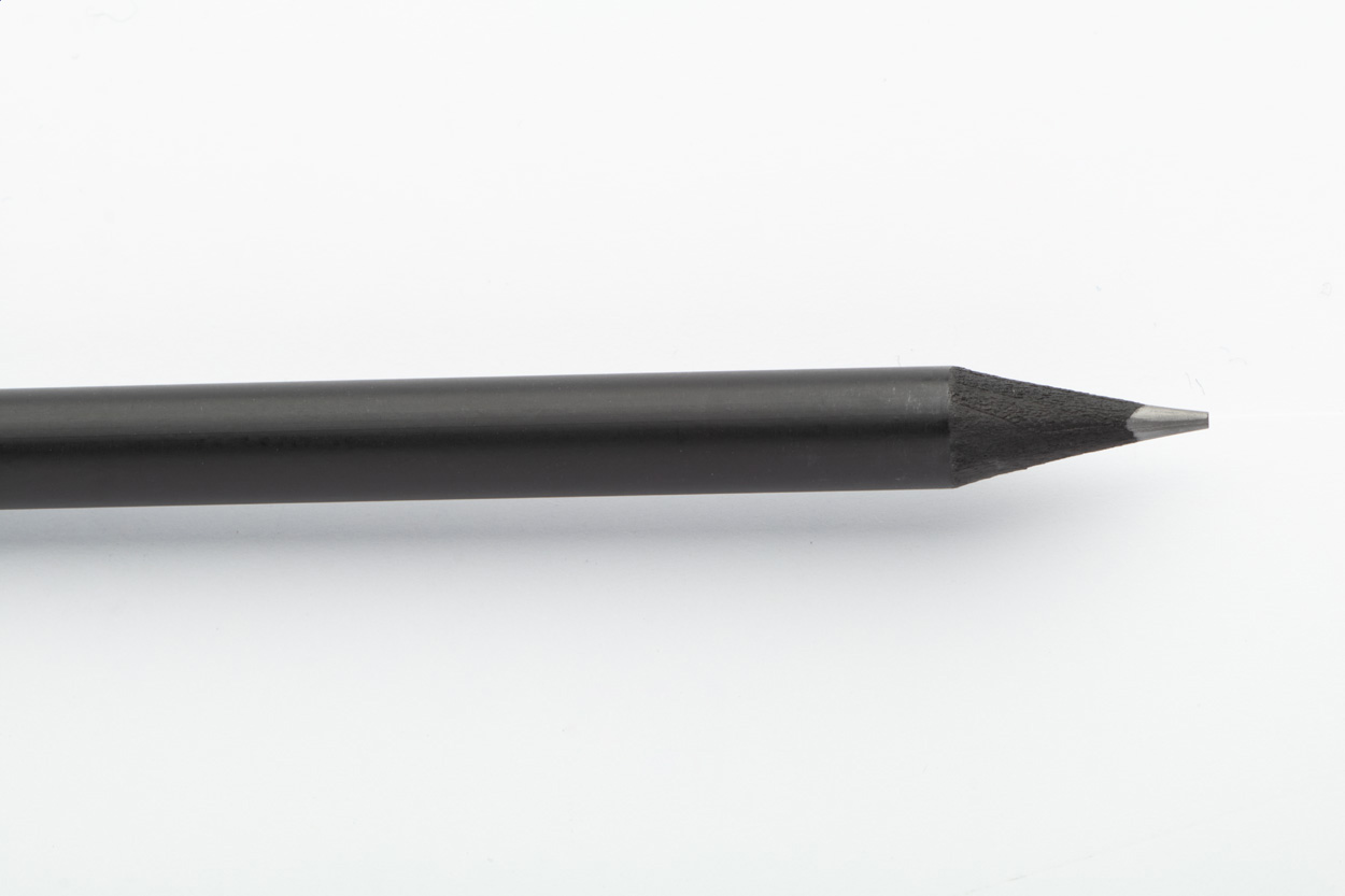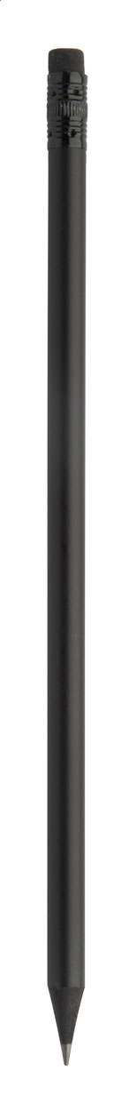 Černá dřevěná tužka v metalickém provedení, s černou gumou. Ořezaná, třída HB.