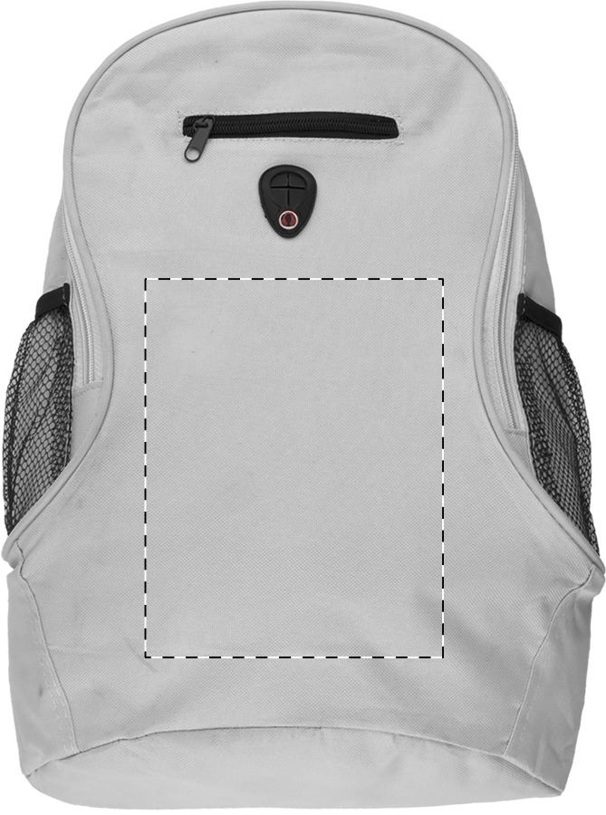 Polyesterový batoh s nastavitelnými ramenními popruhy. Kapsy ze síťoviny, kapsička se zipem na mobil a hlavní přihrádka. 600D polyester.