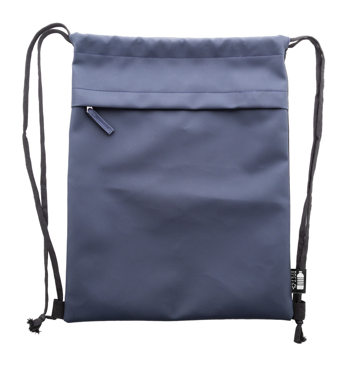 RPET vak se stahovací šňůrkou,s přední stranou potaženou PU a přední kapsou na zip. Polyester 600D RPET potažený PU s výrazným štítkem RPET.