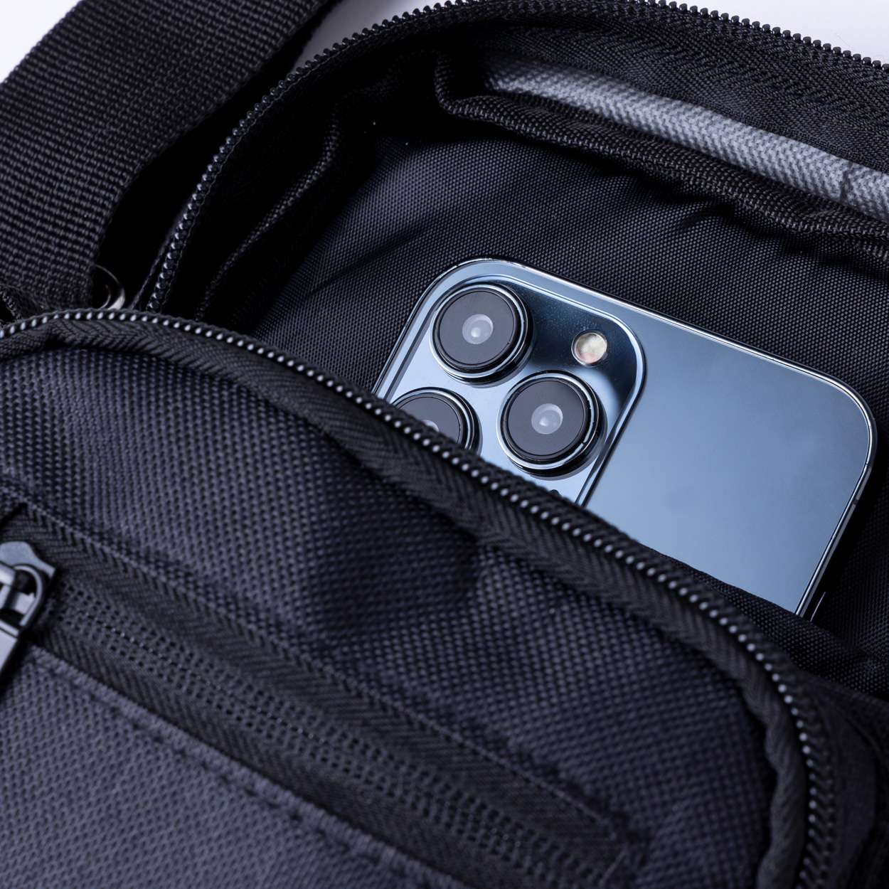 Crossbody kabelka RPET s přihrádkami na zip a nastavitelným ramenním popruhem. 600D RPET polyester s výrazným štítkem RPET.