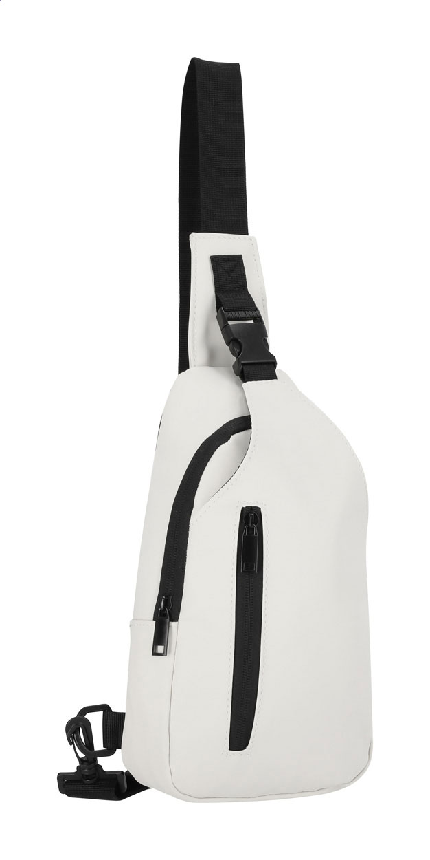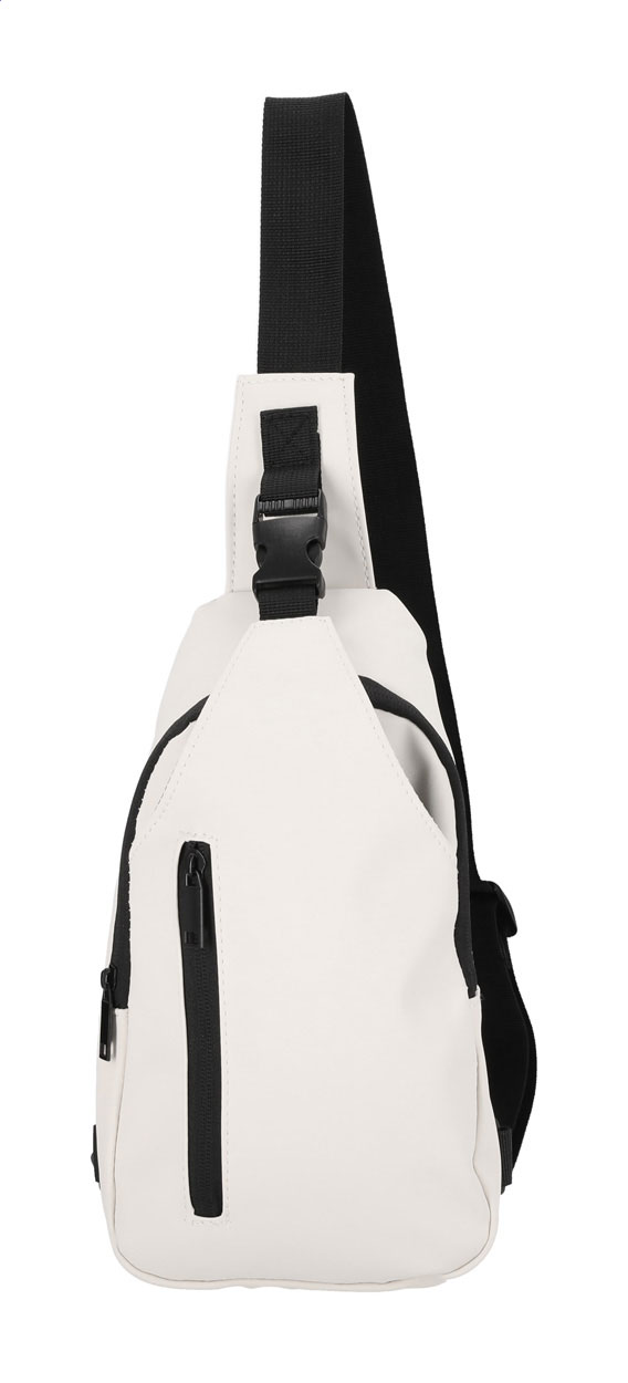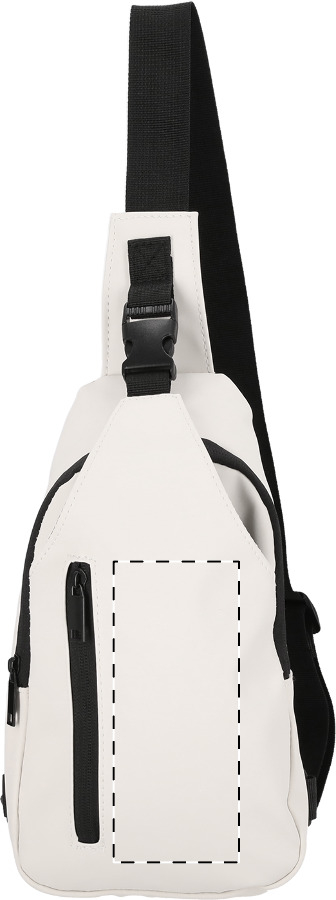 Taška přes rameno z měkké PU kůže s přihrádkami na zip, polstrovanými zády a nastavitelným popruhem.