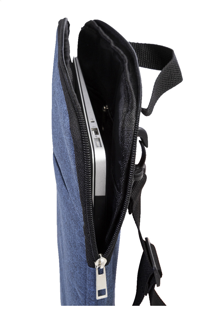 Polstrovaná taška přes rameno z polyesteru 600D RPET na dokumenty nebo notebook s přihrádkou na zip a přední kapsou na zip. Vhodná pro notebooky do velikosti 15". S nastavitelným ramenním popruhem vybaveným vertikální a horizontální polohou. S výrazným štítkem RPET.