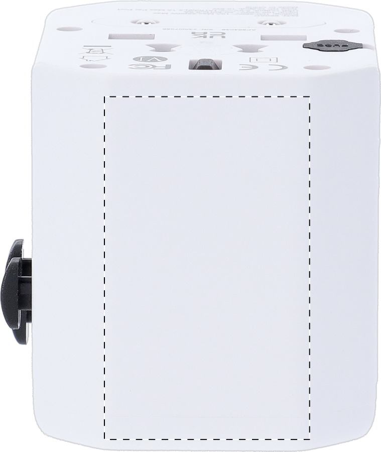 Univerzální celosvětový cestovní adaptér z ABS plastu se zabudovanými kolíky pro USA, Evropu, Velkou Británii a Austrálii. S 1 portem USB a 1 portem USB-C pro nabíječku.