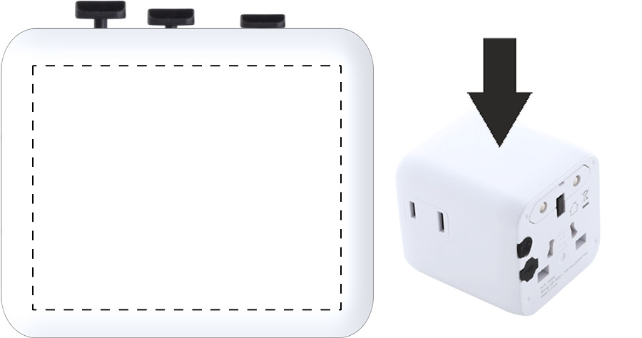 Ultra kompaktní, univerzální celosvětový cestovní adaptér z recyklovaného PC plastu, se zabudovanými zástrčkami pro USA, Evropu, Velkou Británii a Austrálii.