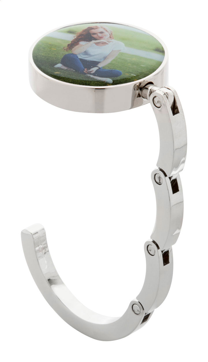 Skládací kovový věšáček na tašku. Dodávaný v černé dárkové krabičce.