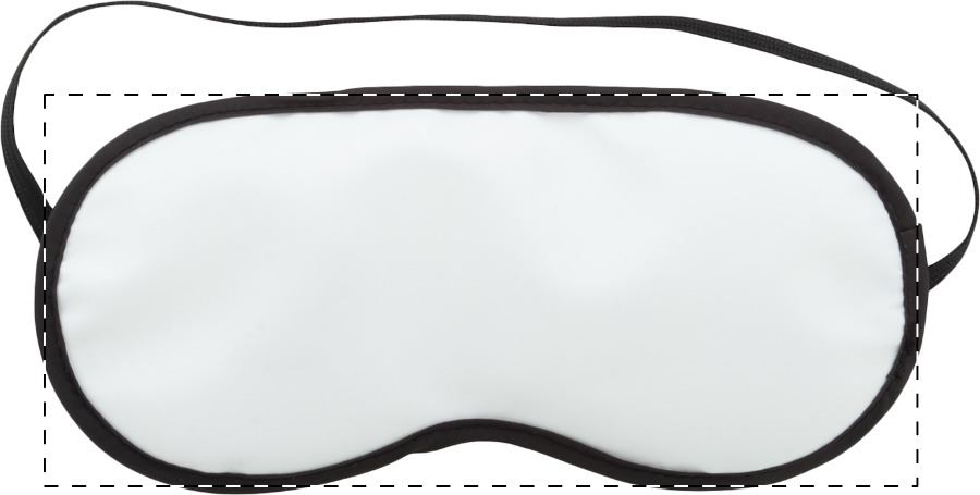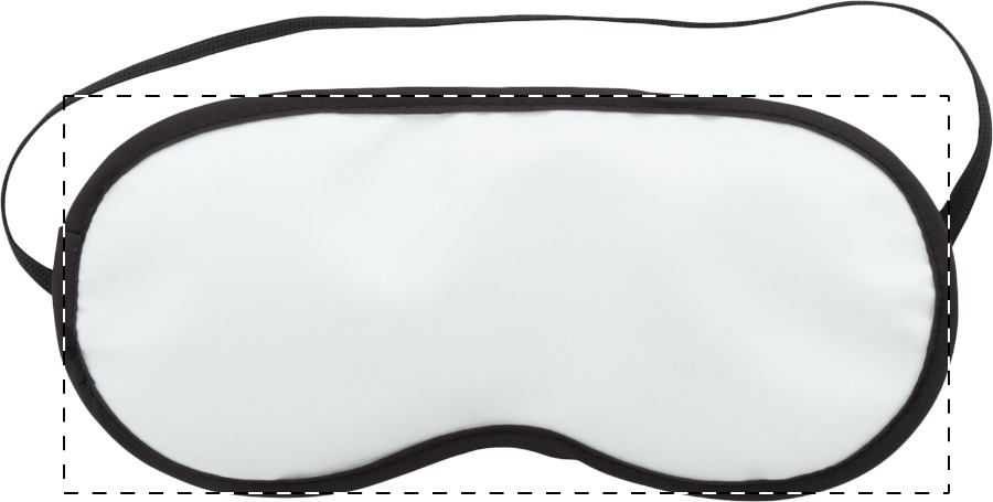 Maska na oči na na zakázku z polyesteru (140 g/m²), s pěnovou výplní, černým lemováním a páskem. S celoplošně tištěnou grafikou sublimací. Cena zahrnuje sublimační tisk, nezahrnuje tiskovou přípravu. Min. mn.: 100 ks.