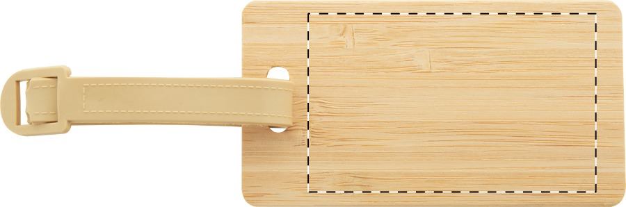 Bambusová visačka na zavazadla s plastovým páskem a přezkou.