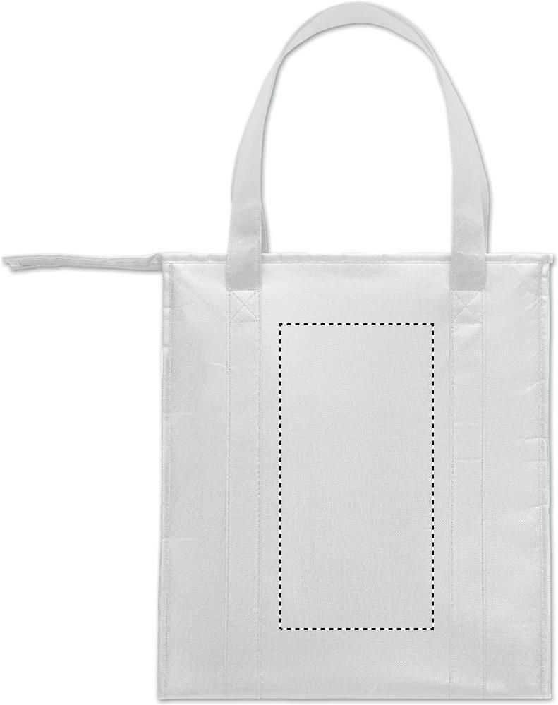 Chladící taška z netkané RPET textilie 80 g/m². Izolační materiál: hliníková fólie. Objem 25 l. Hlavní přihrádka se zipem a vyjímatelnou výztuhou z PP kartonu.