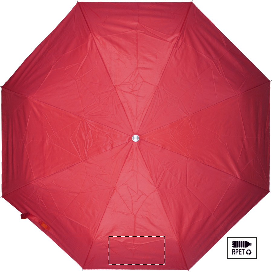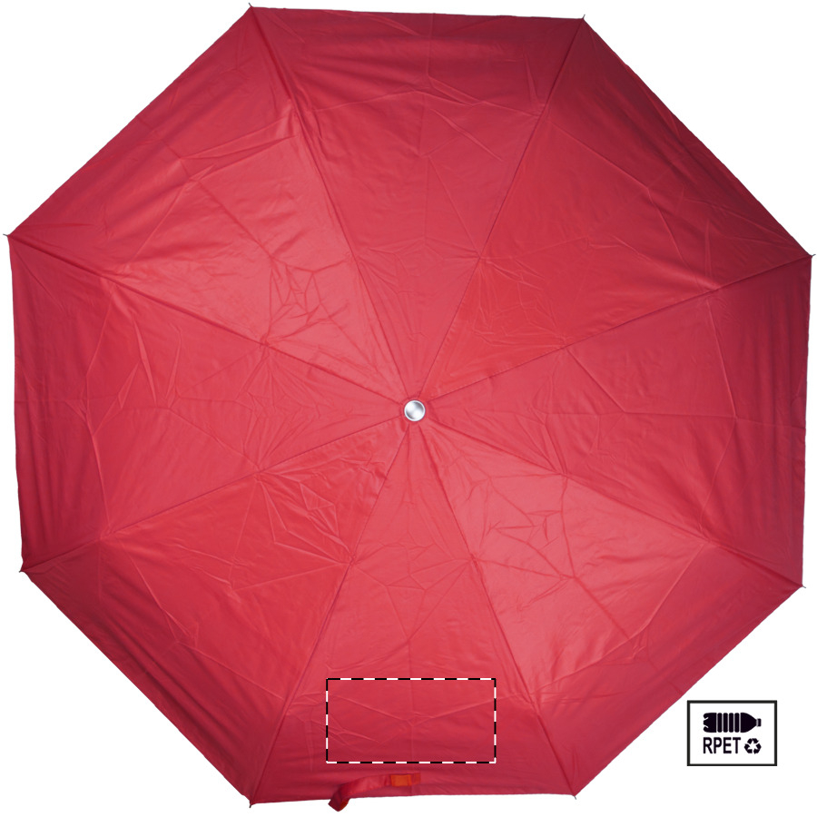 Manuální, větrudodolný skládací deštník s 8 panely ve stejně barevném pouzdře. S kovovým rámem, sklolaminátová žebra a dřevěná rukojeť. 190T RPET pongee, s etiketou s označením RPET.