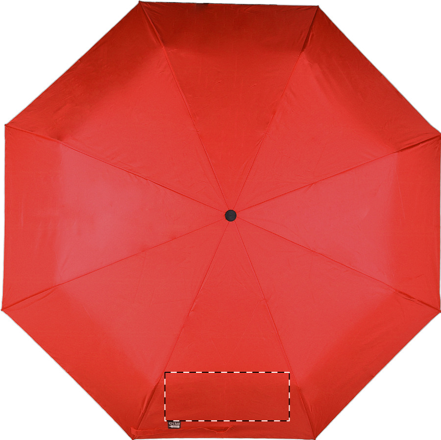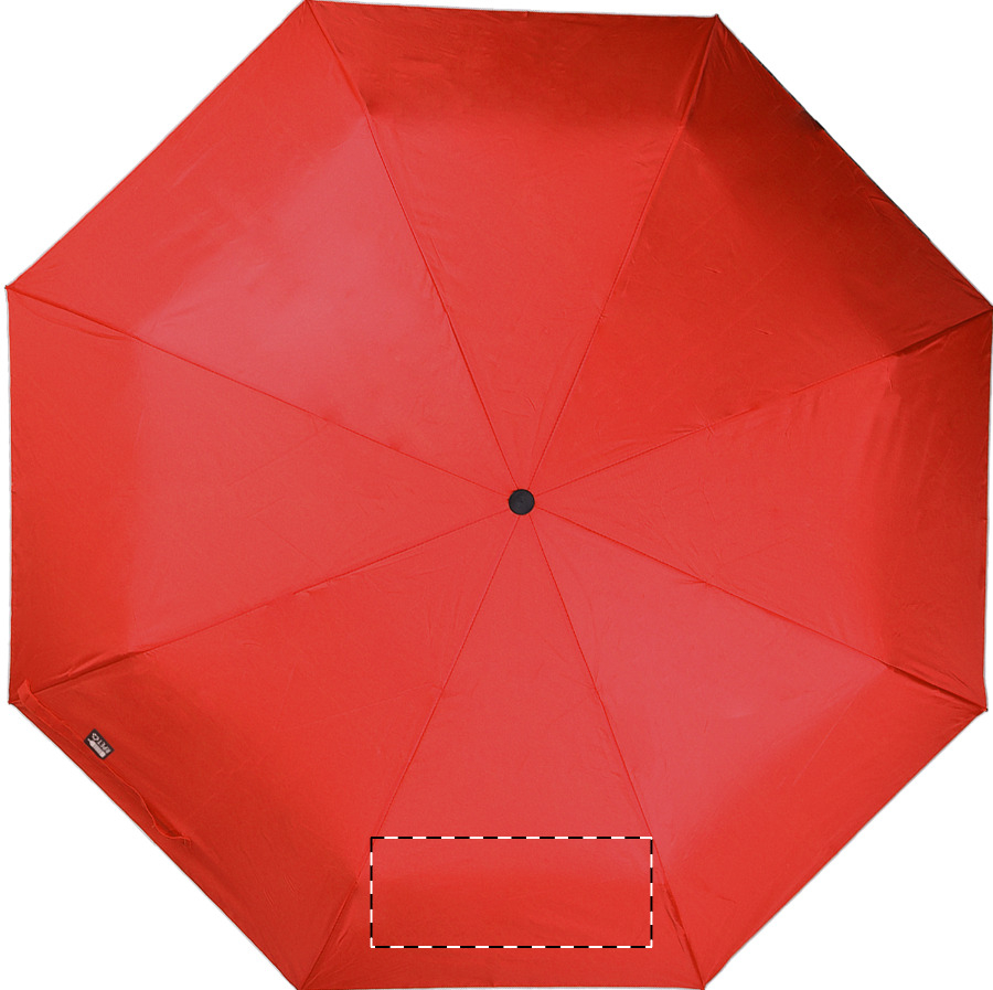 Plně automatický (otevřít/zavřít), větruodolný skládací deštník s 8 panely v pouzdře ve stejné barvě. S kovovým rámem, sklolaminátovými žebry a pogumovanou karabinou. Pongee 190T RPET. S výrazným štítkem RPET.