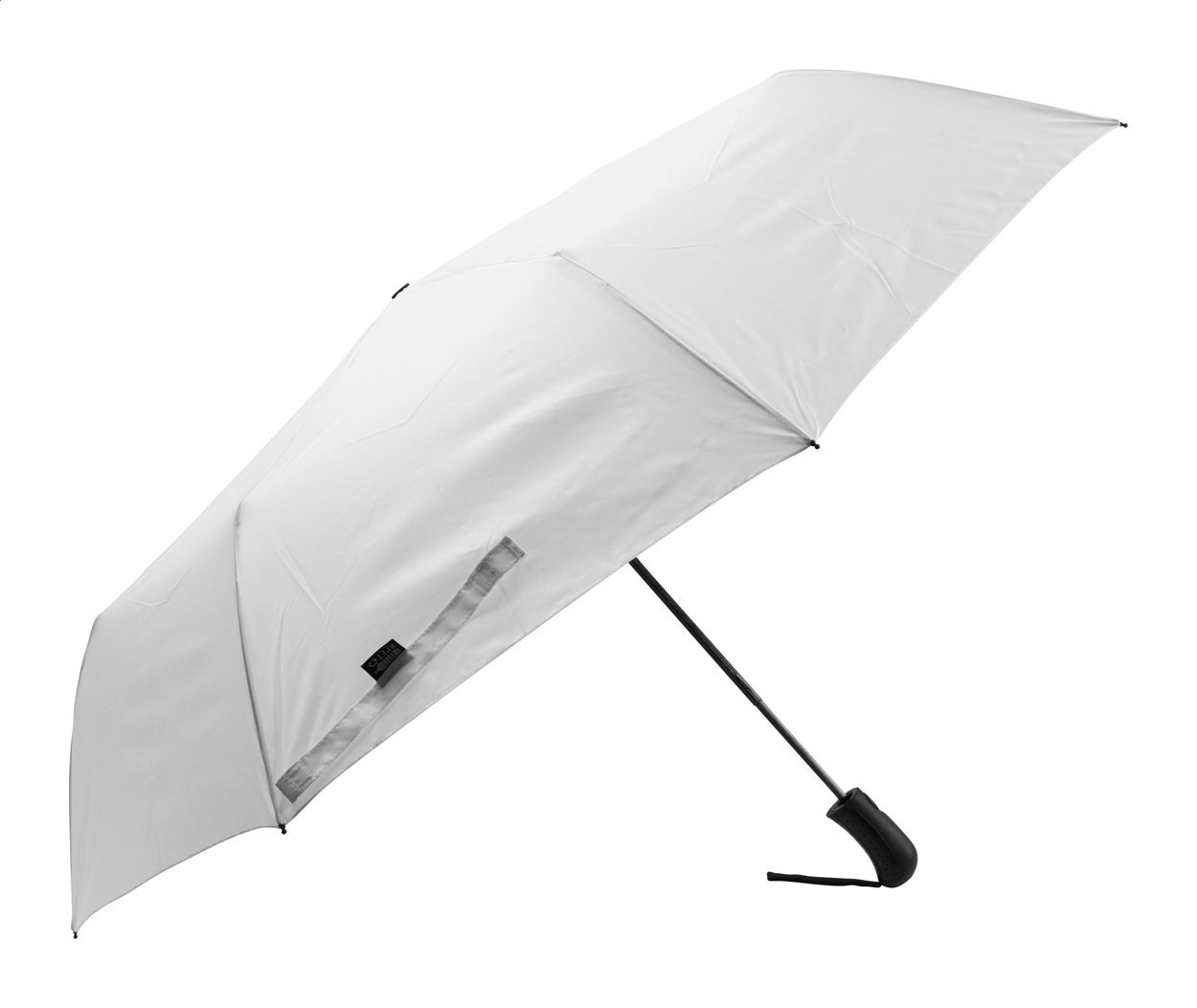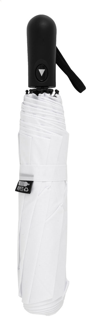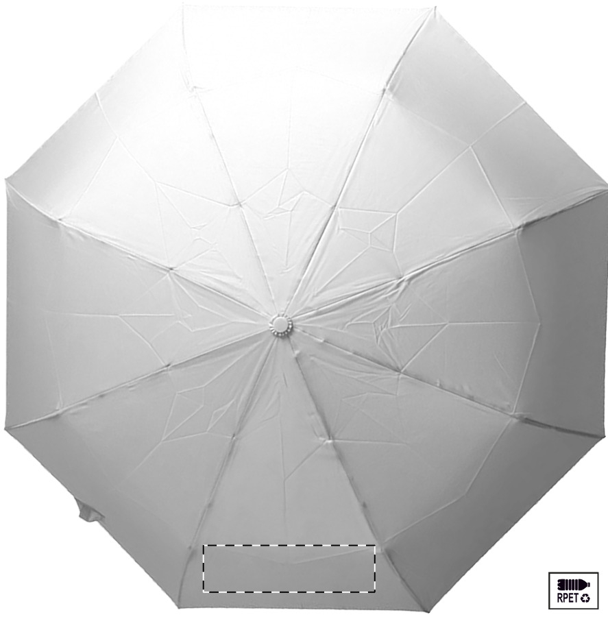 Velký automatický skládací deštník odolný proti větru s 8 panely v pouzdru odpovídající barvy. S kovovým rámem, sklolaminátovými žebry a ABS rukojetí s poutkem na ruku. Pongee 190T RPET. S výrazným štítkem RPET.