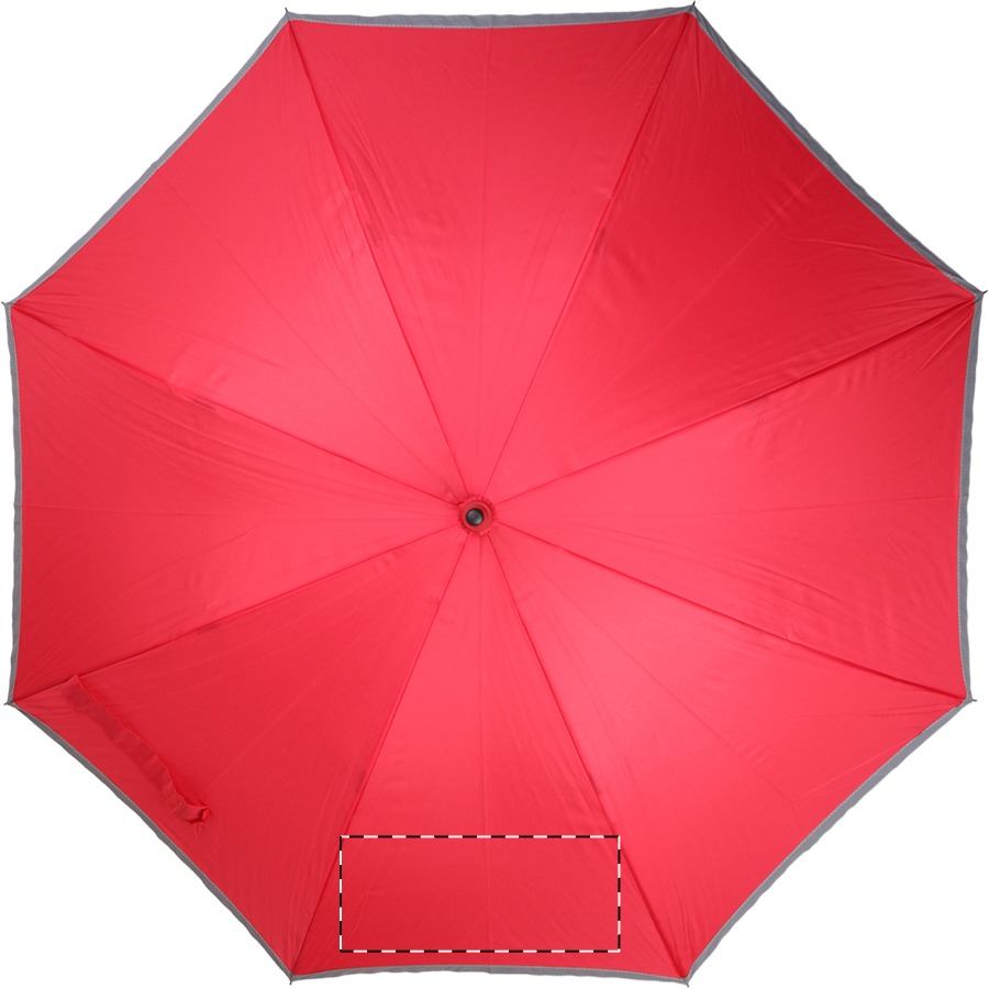 Automatický, větruodolný deštník s 8 panely, reflexním lemováním, pogumovaným držadlem, barevnou tyčí a stejně barevnou konstrukcí ze skelných vláken, 190 T pongee. Pouze pro propagační účely, se produkt nekvalifikuje jako osobní ochranný prostředek.