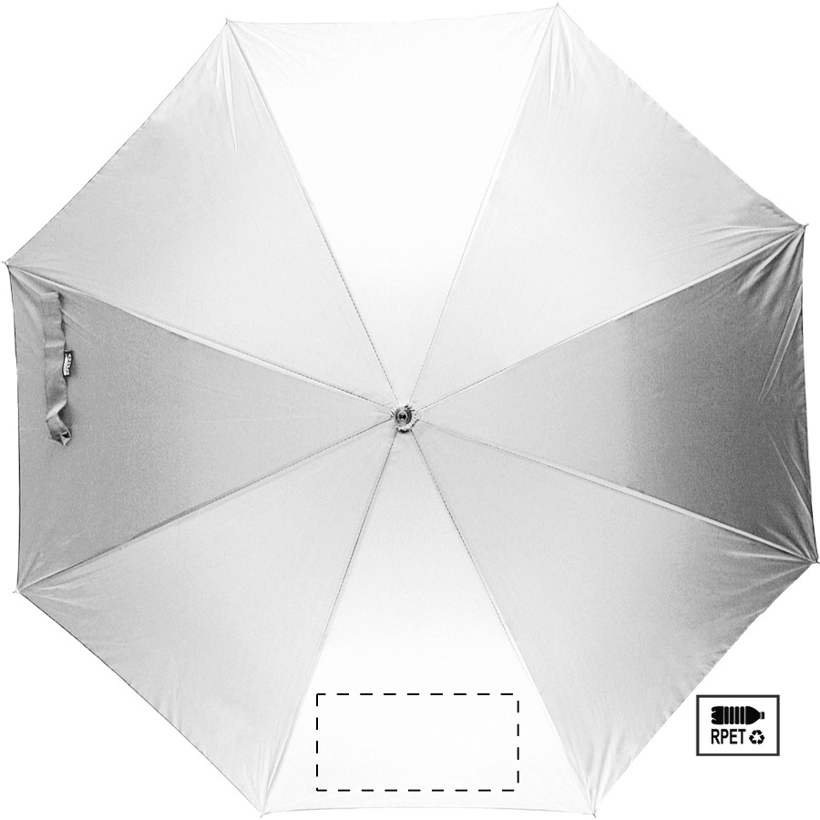 Velký, automatický větruodolný deštník s 8 panely, celosklolaminátová rukojeť a rám, ABS rukojeť. Pongee 190T RPET. S výrazným štítkem RPET.