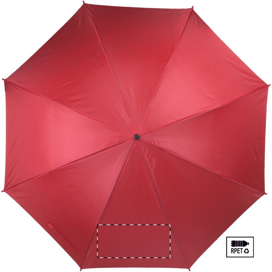 Automatický deštník s 8 panely, kovovým rámem, dřevěnou tyčkou a rukojetí. 190T RPET pongee, s etiketou s označením RPET.