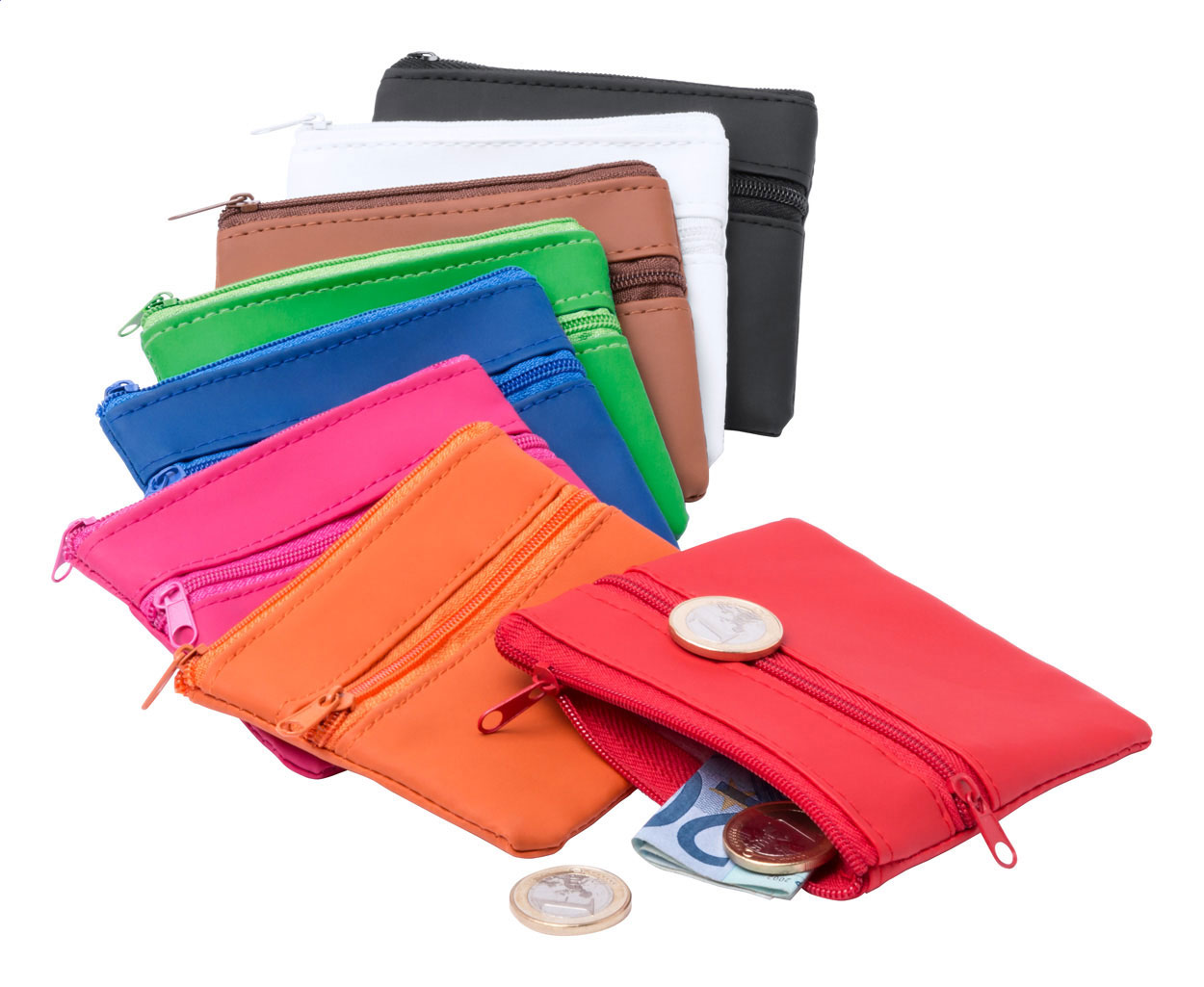 Peněženka se 2 zipy, z PU kůže.