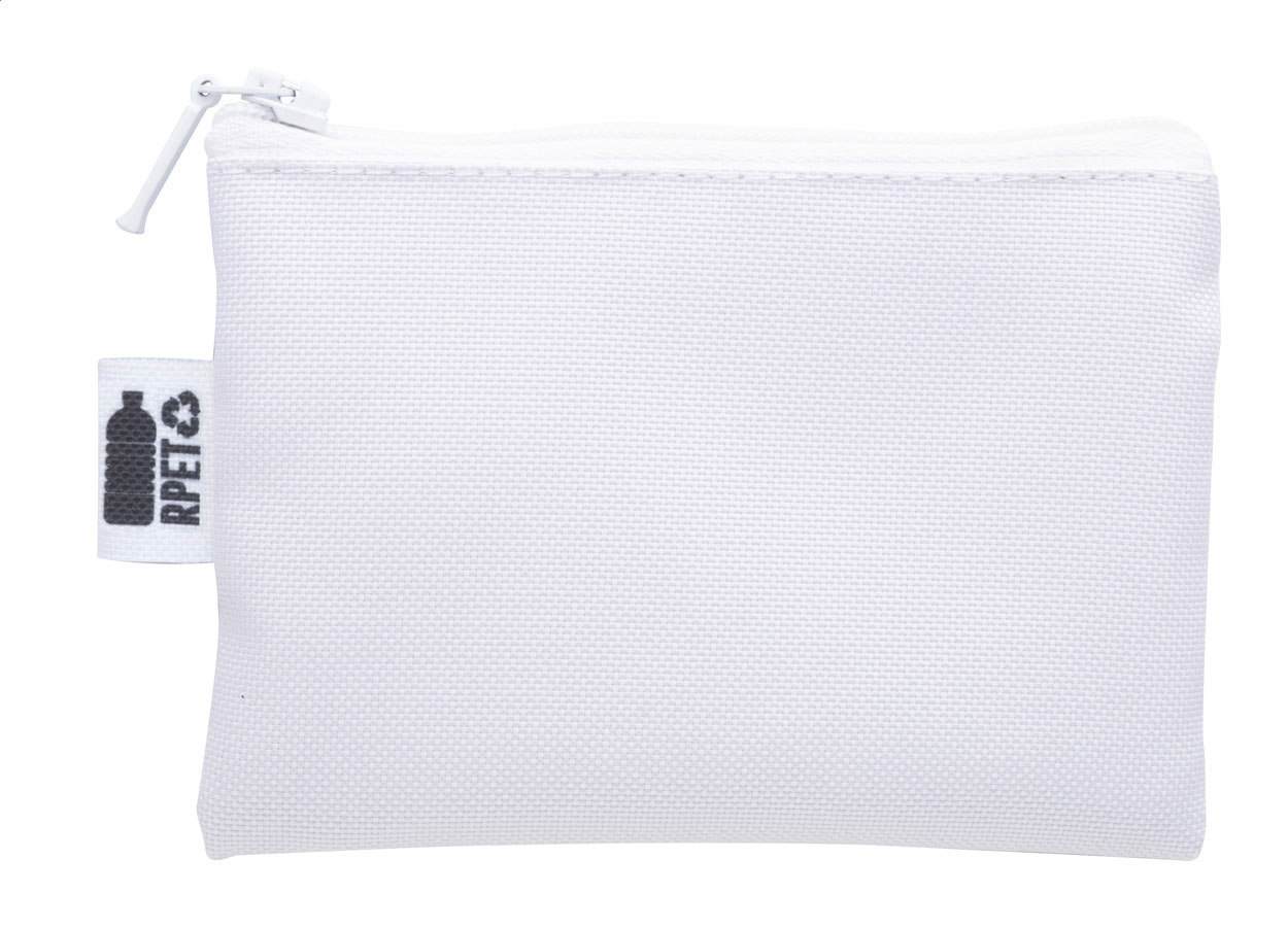 Na zakázku vyrobená peněženka na zip chráněná RFID z polyesteru 600D RPET, s výrazným štítkem RPET. Cena zahrnuje celoplošně tištěnou sublimační grafiku, nezahrnuje tiskovou přípravu. Min. mn.: 50 ks.