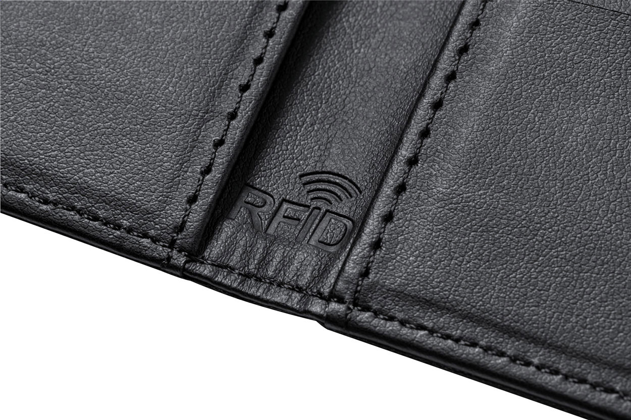Polyesterová peněženka RPET chráněná RFID se 6 přihrádkami na kreditní karty.