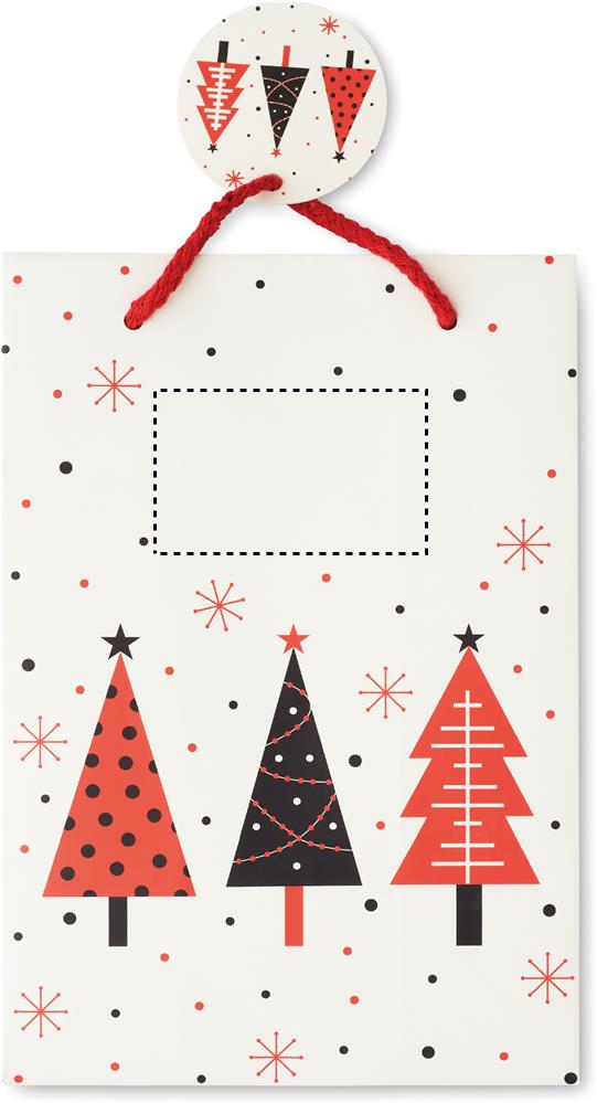 Malá vánoční dárková papírová taška (30 % recyklovaná) s visačkou. 128 g/m². FSC®-certified | FSC MIX, P5.3, FSC-C213206