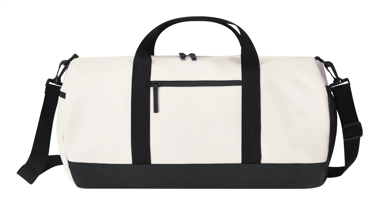 Sportovní taška z měkké PU kůže s přihrádkou na zip a kapsami, boční síťovanou kapsou a nastavitelným ramenním popruhem.