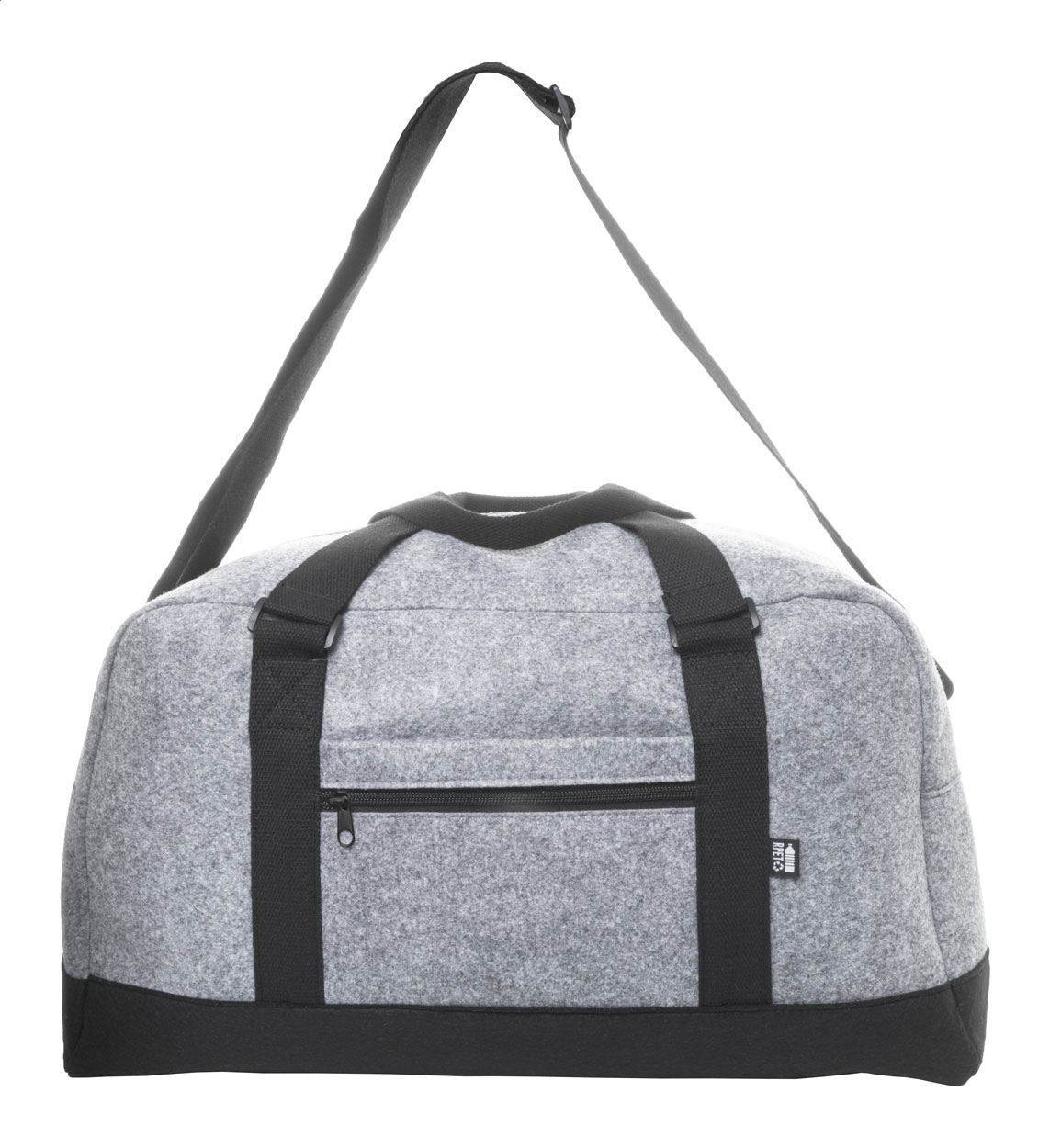Dvoubarevná sportovní taška z RPET plsti s hlavní přihrádkou na zip, přední kapsou na zip a nastavitelným ramenním popruhem. S výrazným štítkem RPET.