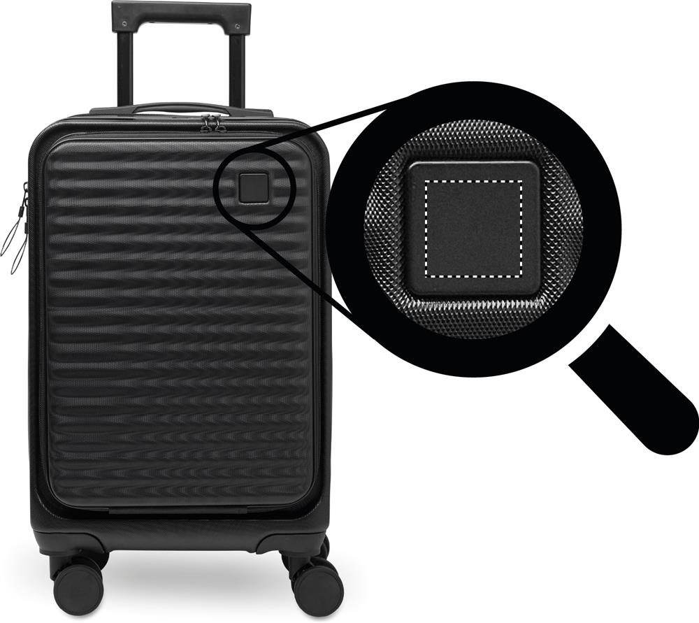 Kufr na kolečkách z pevné skořepiny z ABS. Jedna hlavní a další přední přihrádka na zip a polstrovaná přihrádka na 15'' notebook. Součástí je bezpečnostní zámek (TSA). 4 kolečka.
