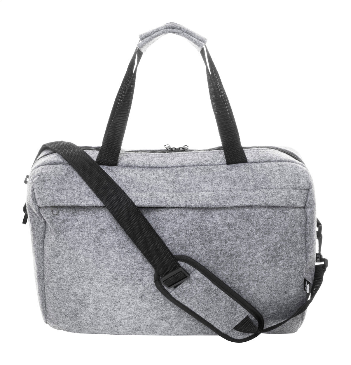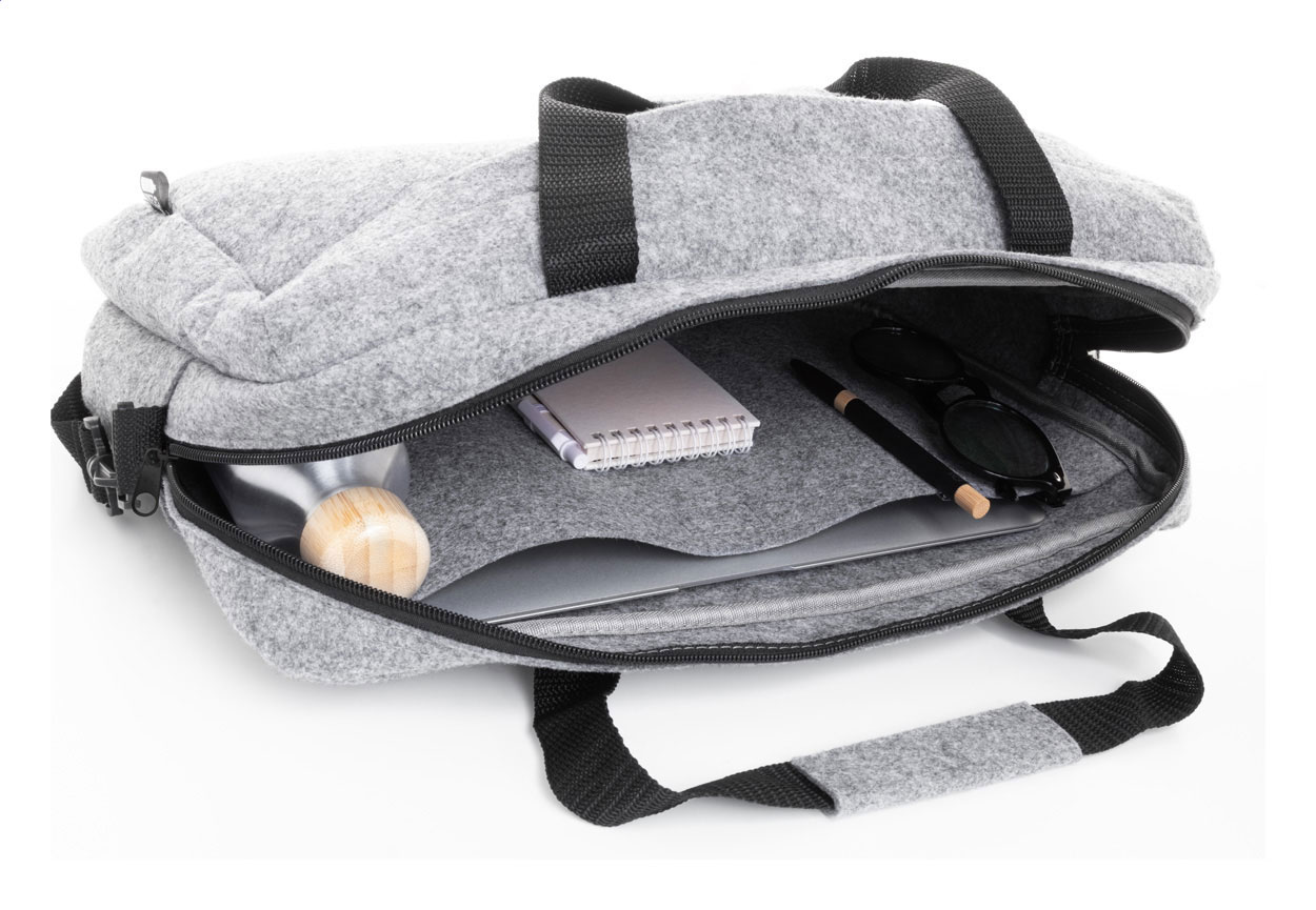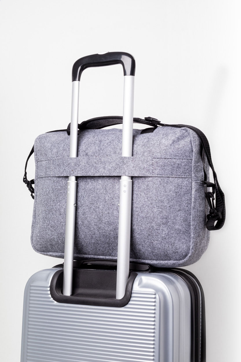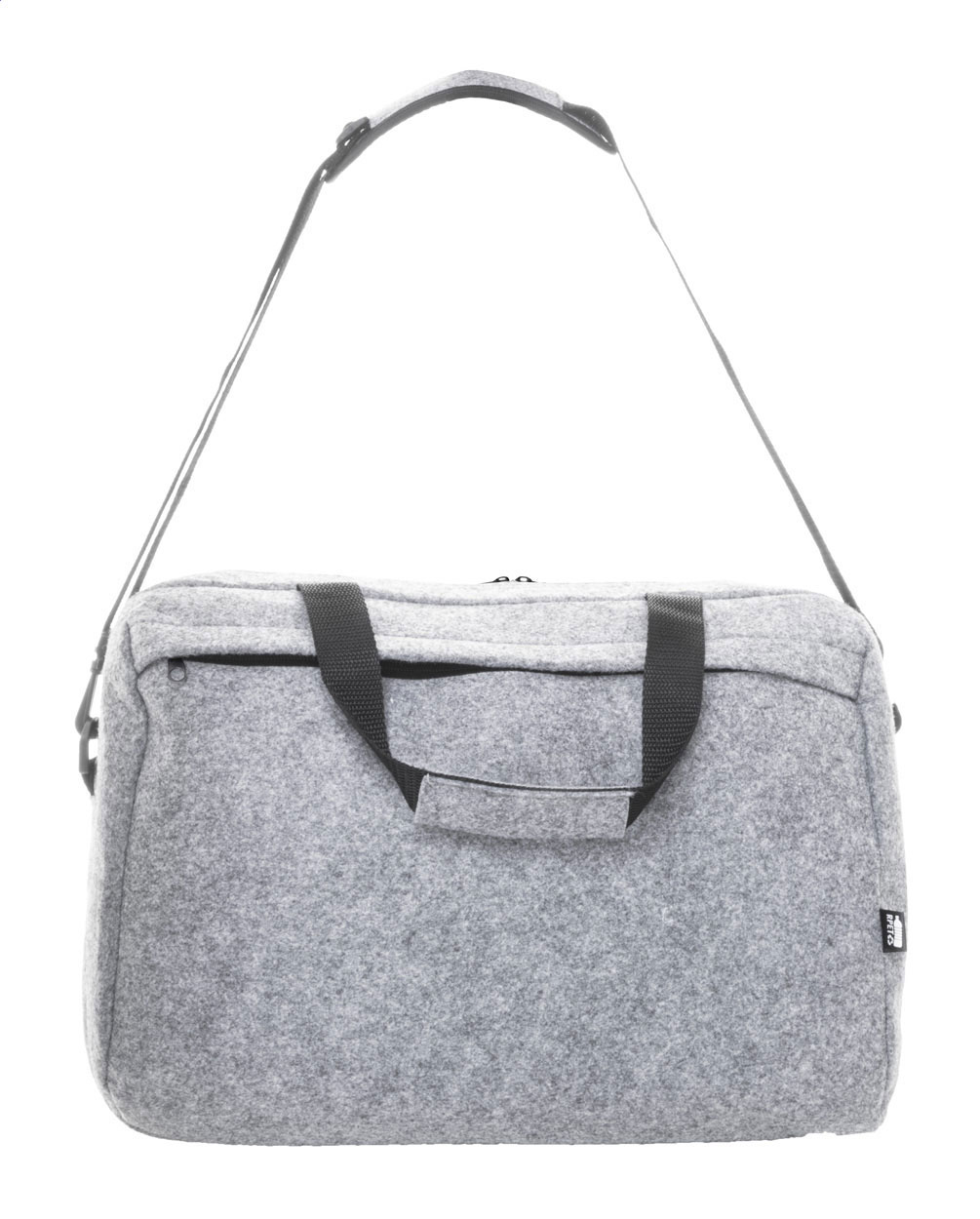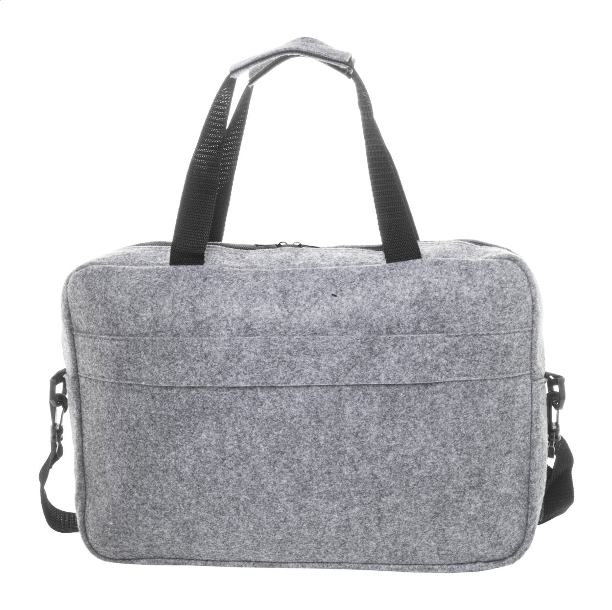 Taška na dokumenty z RPET plsti s hlavní přihrádkou na zip a přední kapsou. S přihrádkou na notebook (15"), popruhem na vozík a nastavitelným ramenním popruhem. S výrazným štítkem RPET.